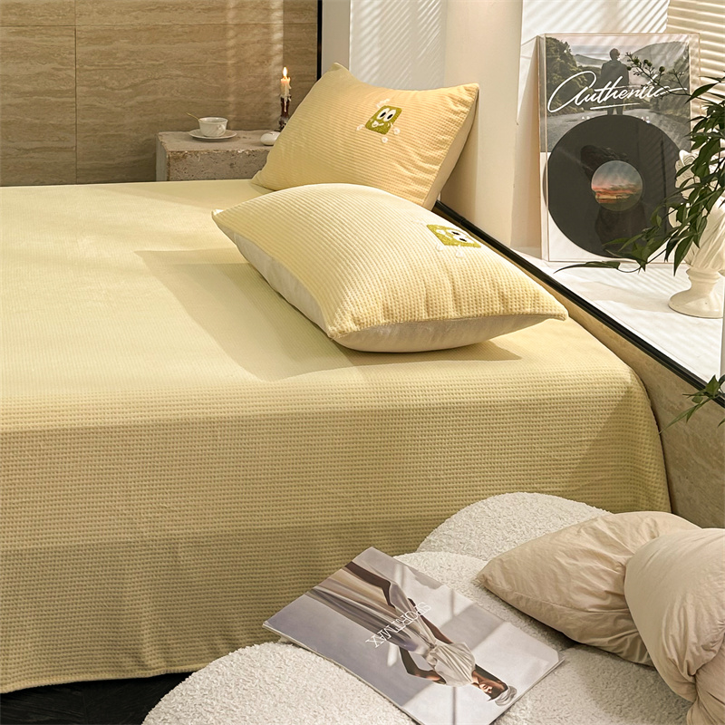 洋铭区(原狠狠爱) 2023新款华夫格单品绒床单 华夫格-暖黄