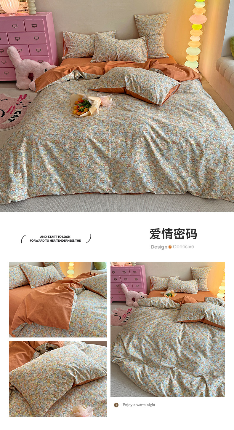 千朵 2023新款全棉生态磨毛四件套第三批 爱情密码