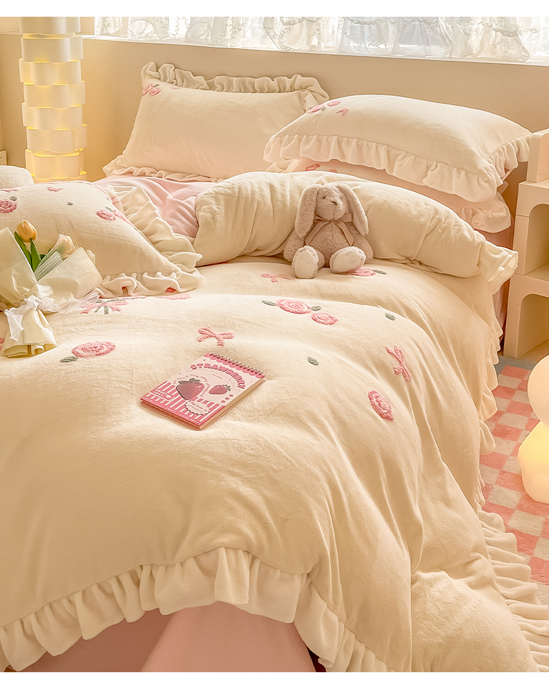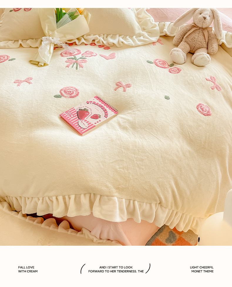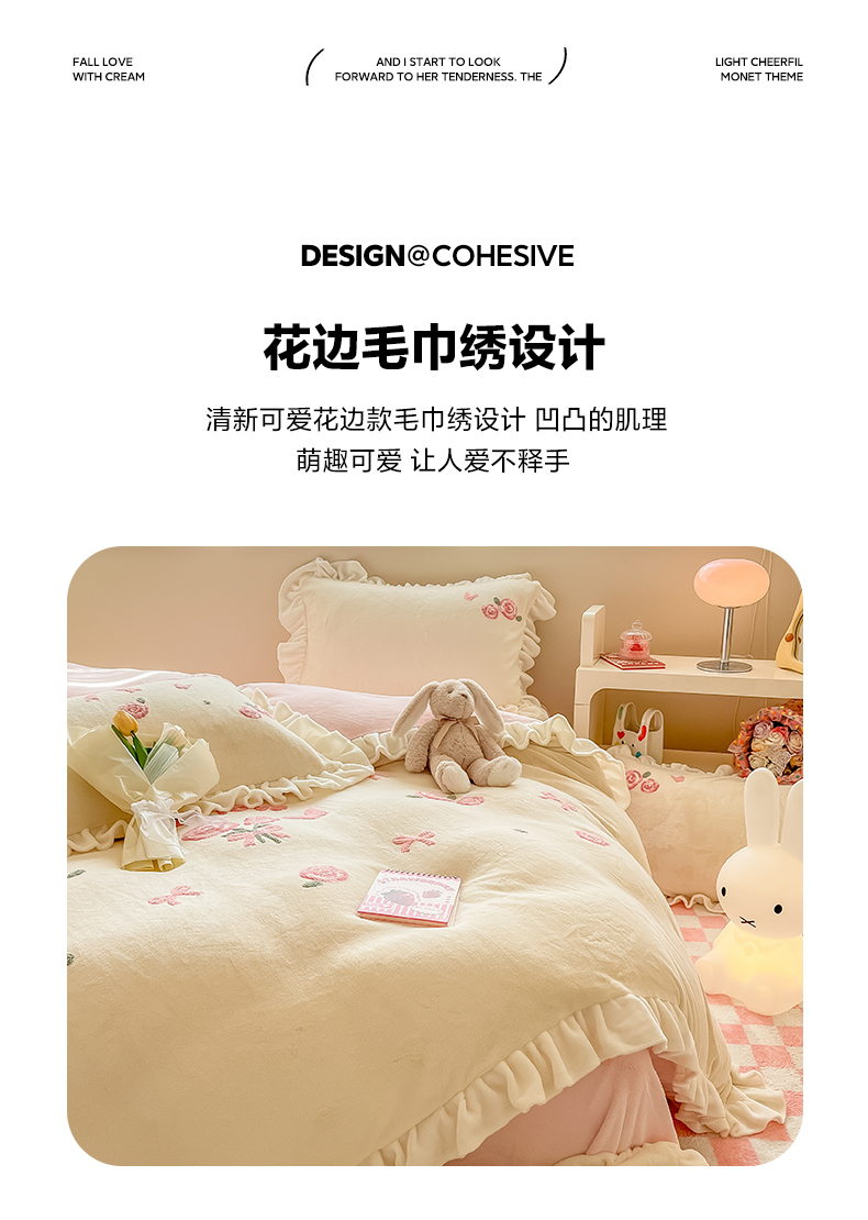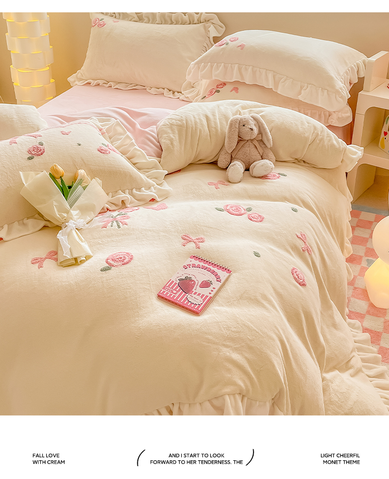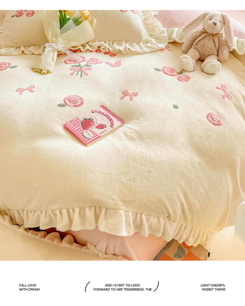 当前位置: 91家纺网 > 商品网购 > 床品套件 > 四件套 > 牛奶绒四件套 > 眠屿家纺2023新款花边款毛巾绣牛奶绒四件套(温馨版)花边玫瑰恋曲-白