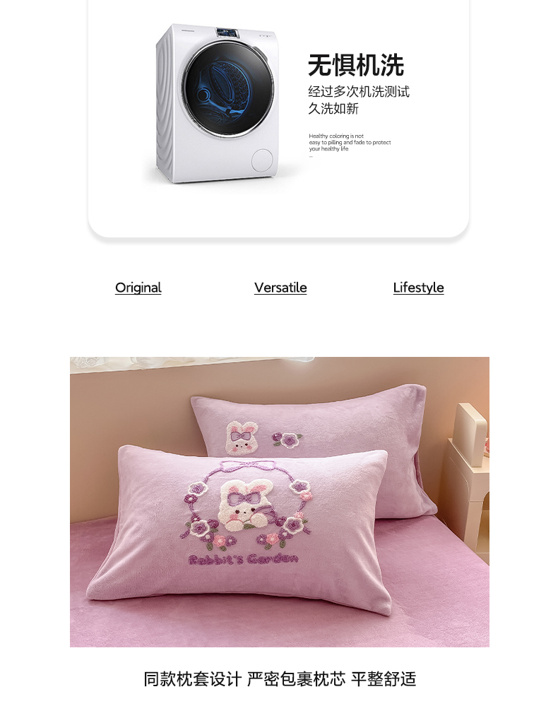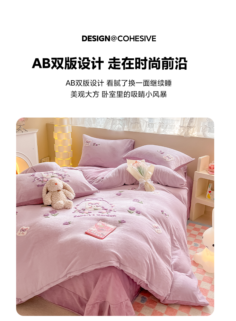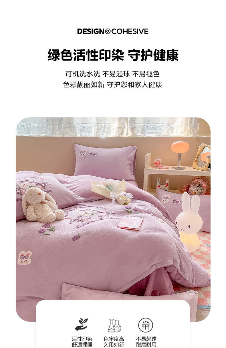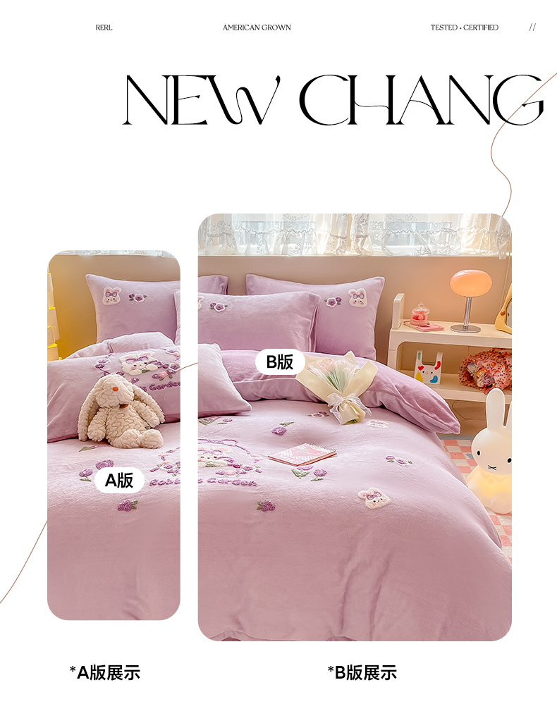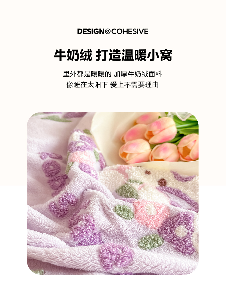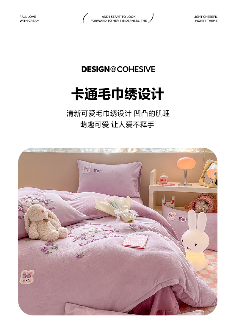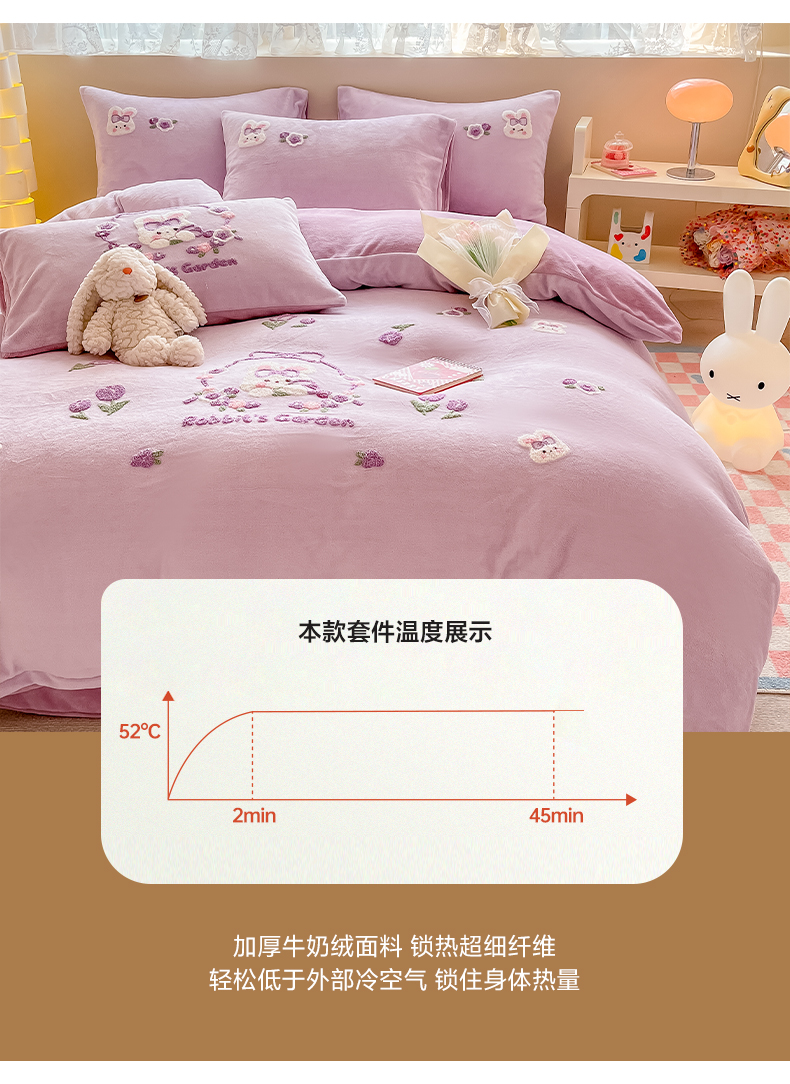 当前位置: 91家纺网 > 商品网购 > 床品套件 > 四件套 > 牛奶绒四件套 > 眠屿家纺 2023新款牛奶绒毛巾绣四件套(温馨版) 兔子花园-紫