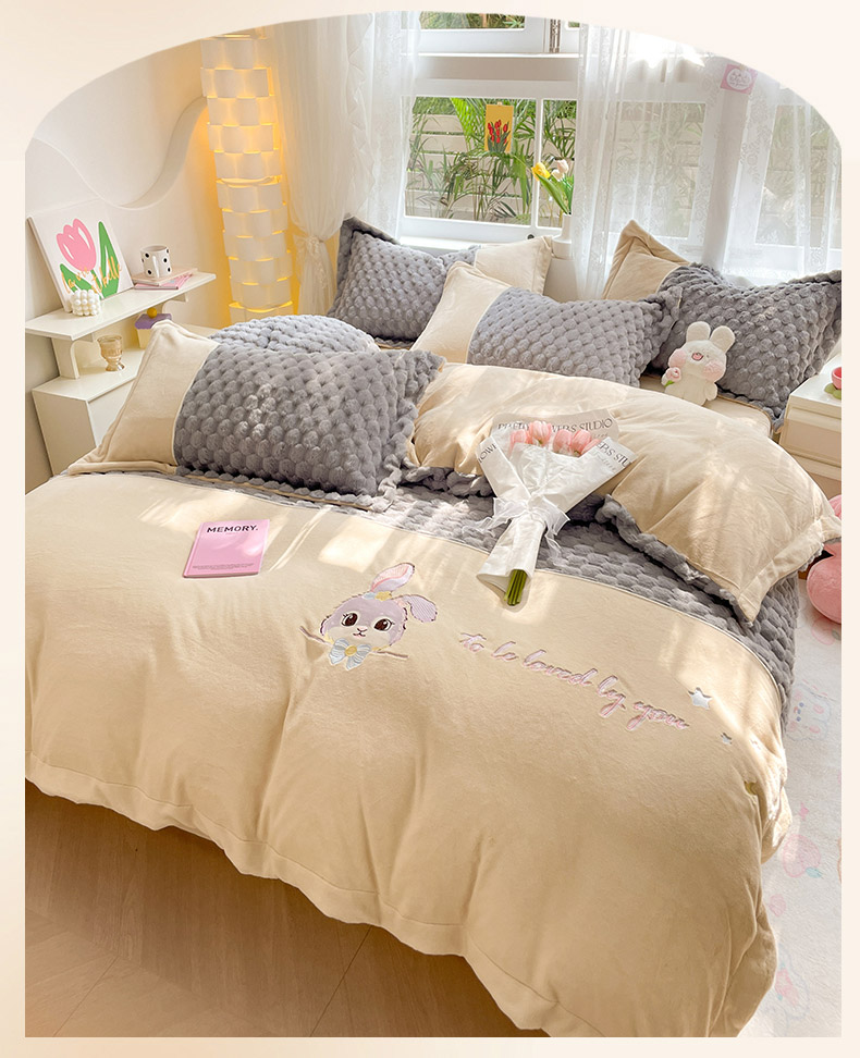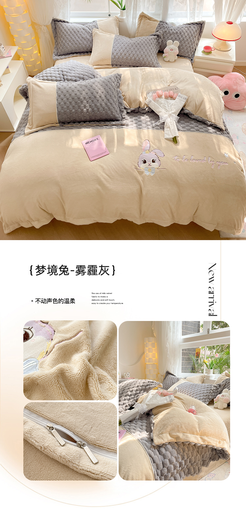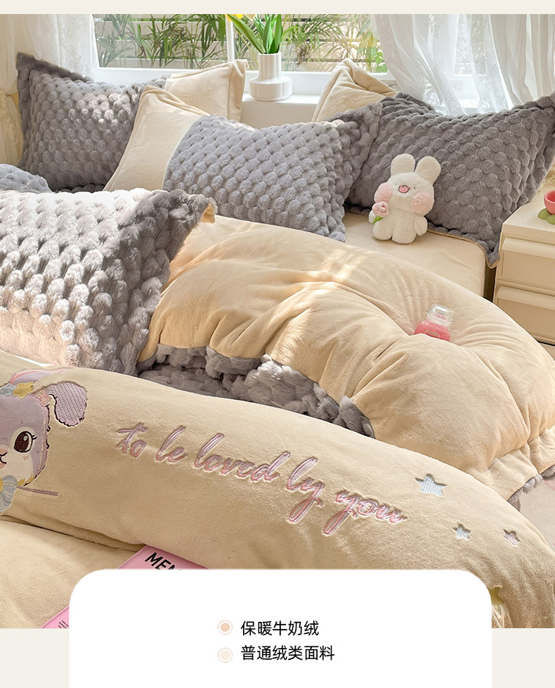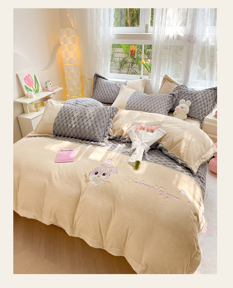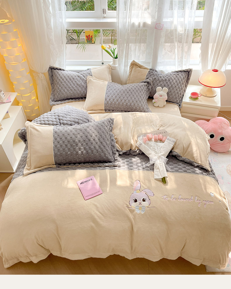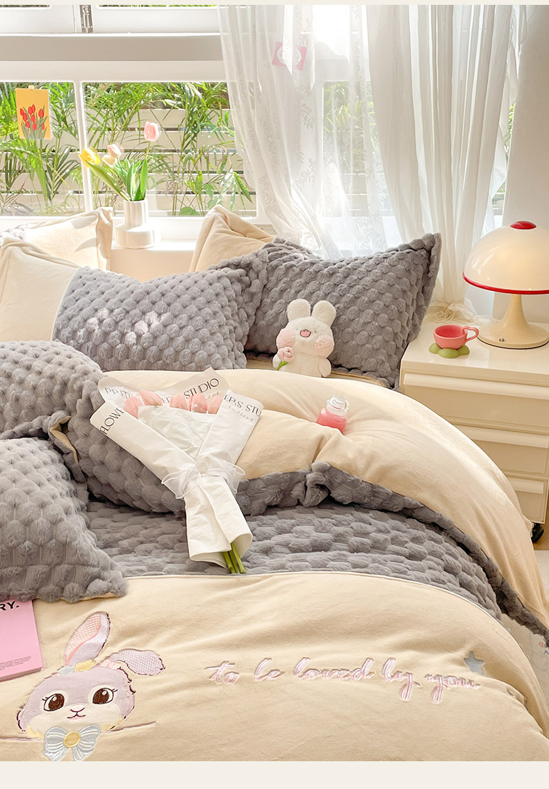 商品名称:爱上家居 2023新款牛奶绒兔毛绒四件套 梦境兔 梦境兔-雾霾灰