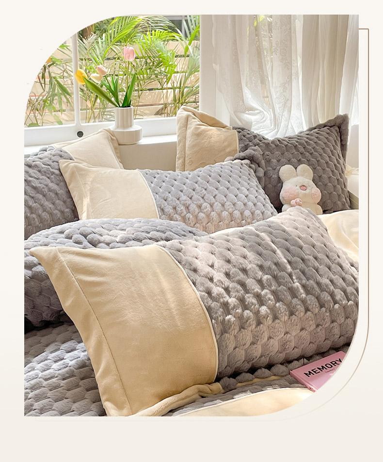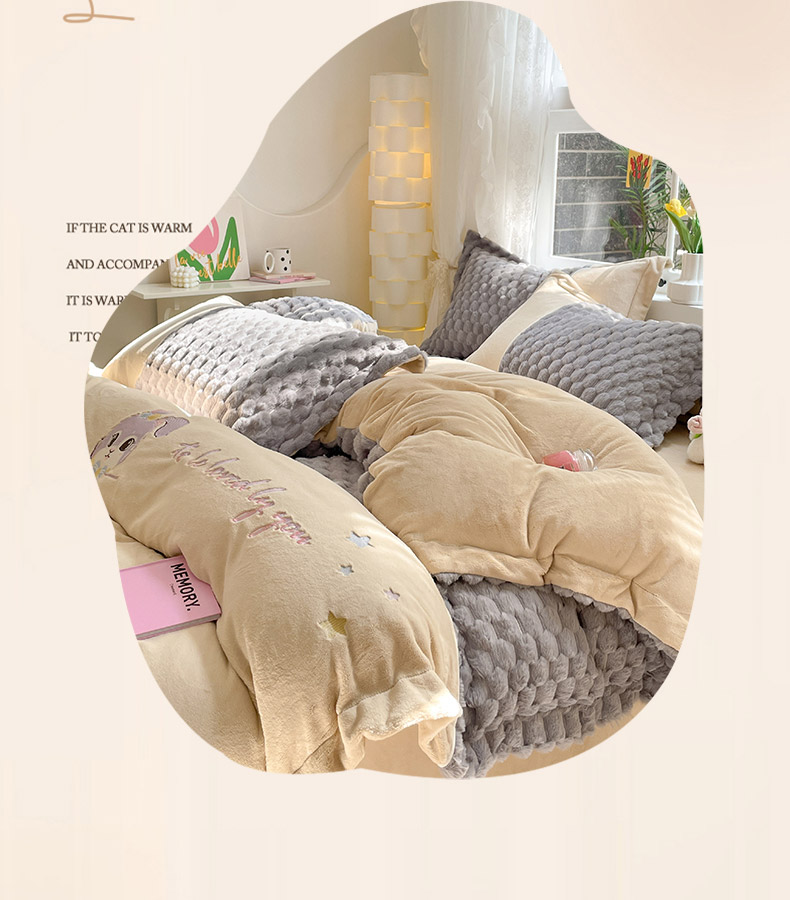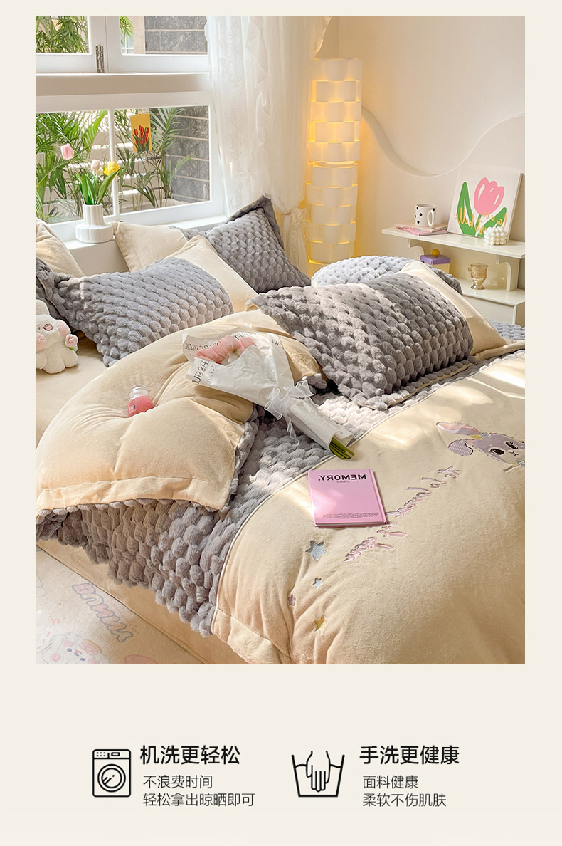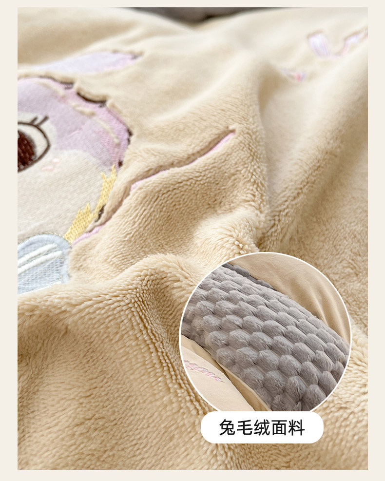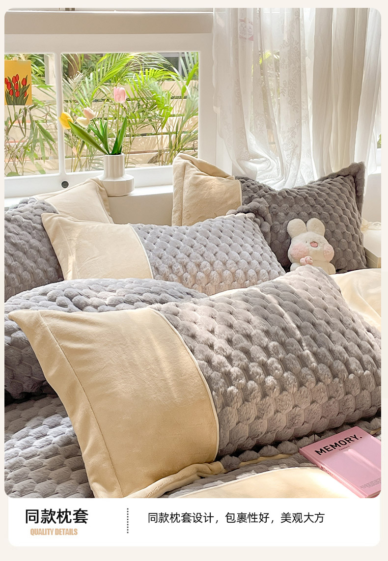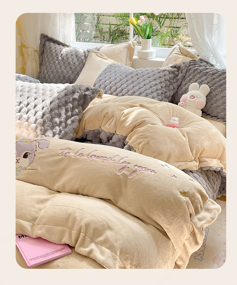 商品名称:爱上家居 2023新款牛奶绒兔毛绒四件套 梦境兔 梦境兔-雾霾灰