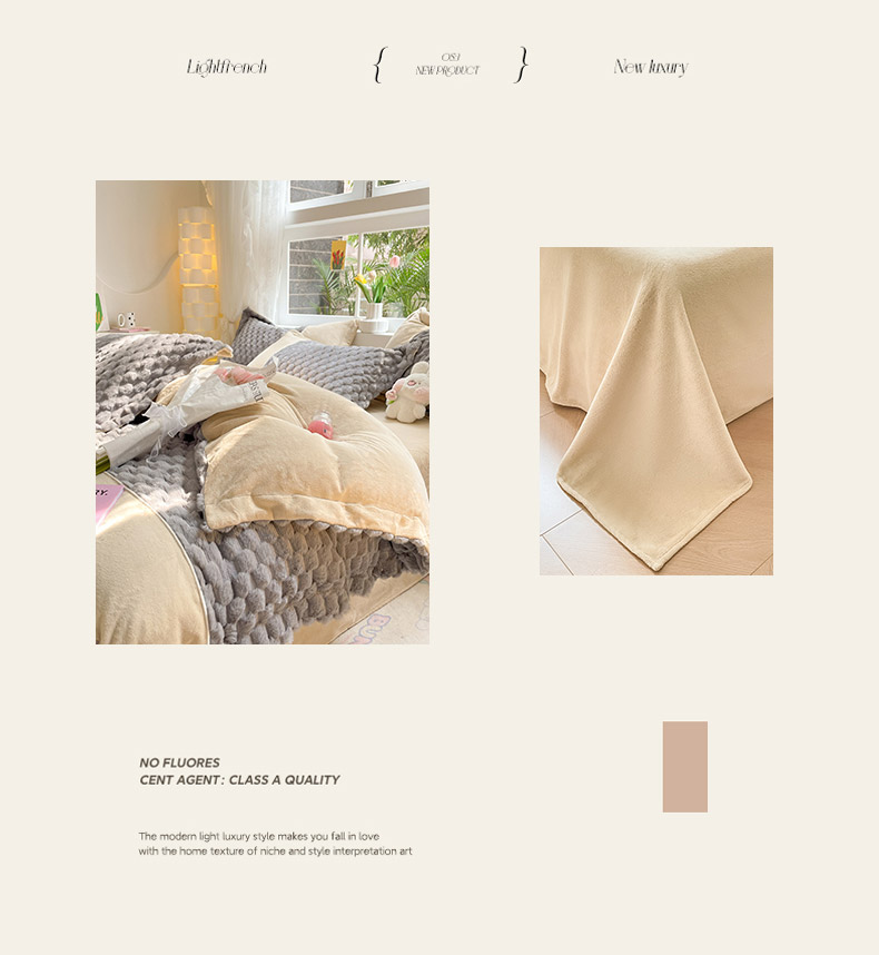 (总)爱上家居 2024新款亲肤舒适纯色兔兔绒牛奶绒四件套,白色,粉色,灰色,米白,苹果绿,浅蓝,深绿,驼色,紫色