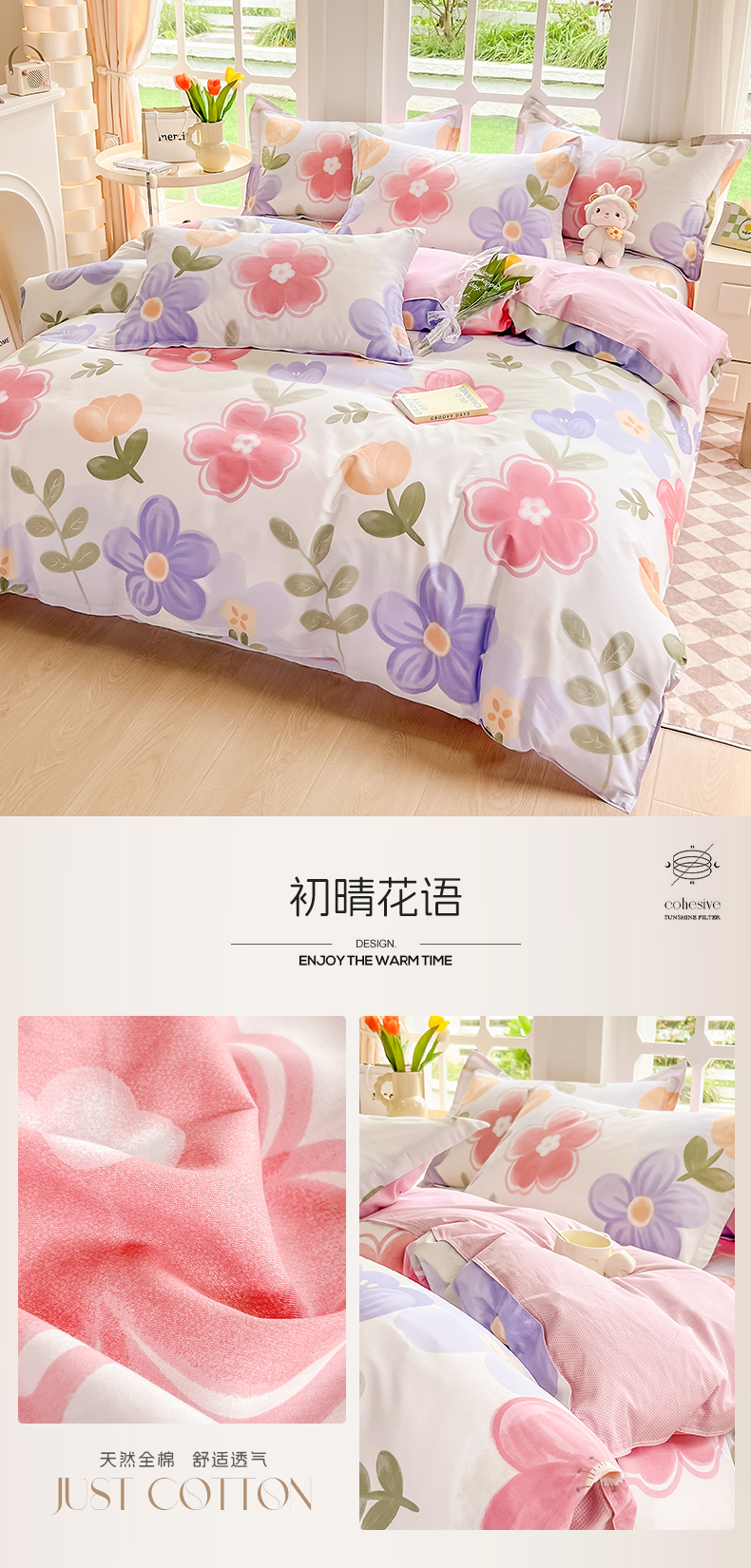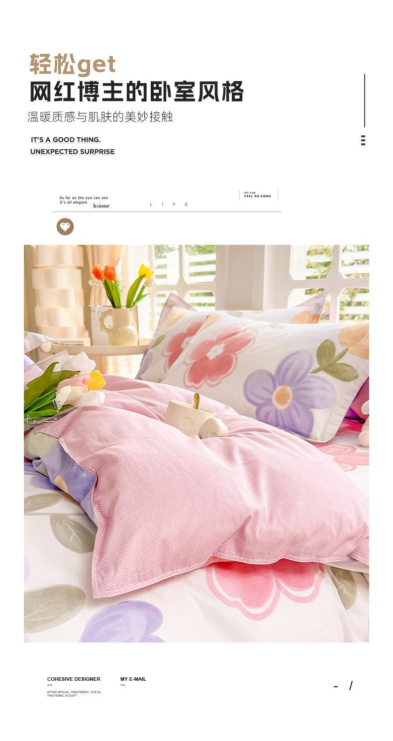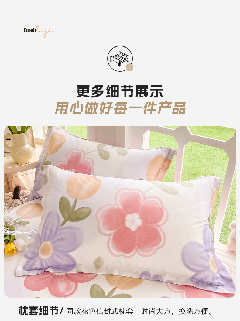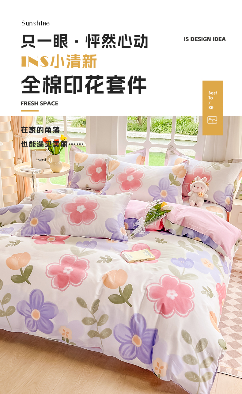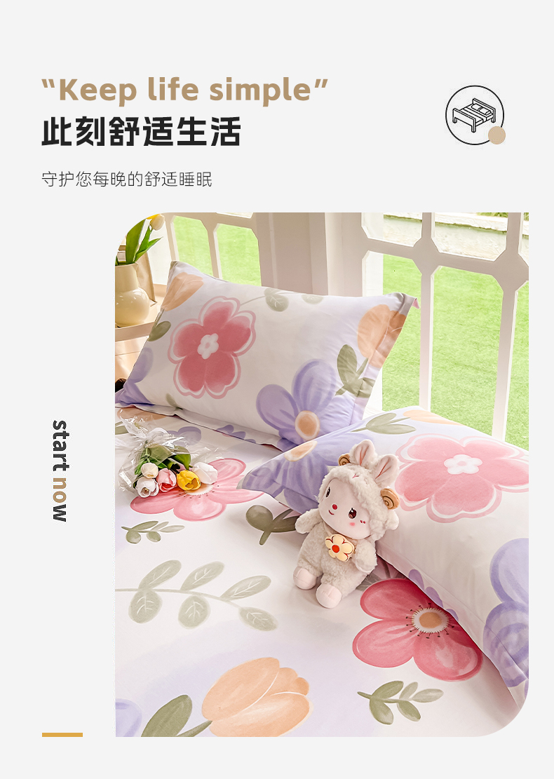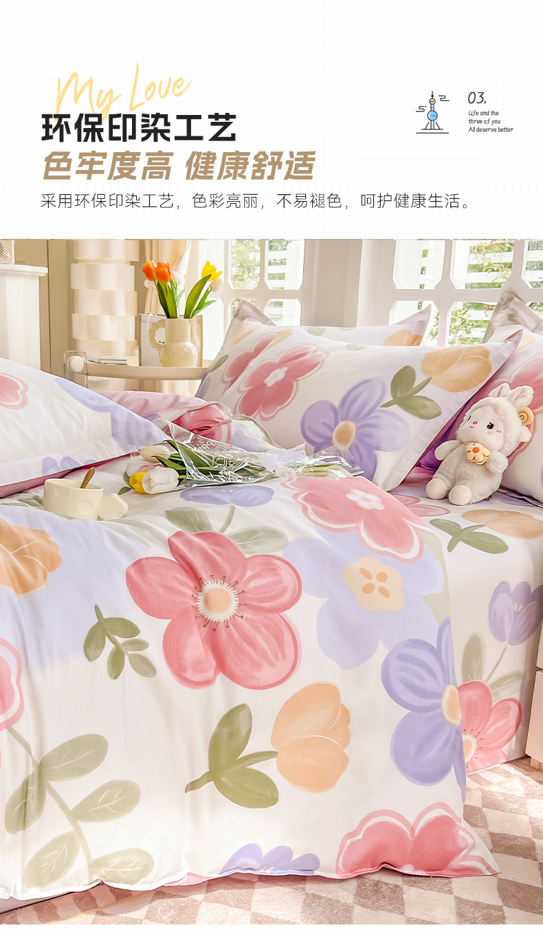 当前位置: 91家纺网 > 商品网购 > 床品套件 > 四件套 > 全棉普通四件套 > 绵庭家纺 2023新款12868系列全棉小清新印花四件套 初晴花语