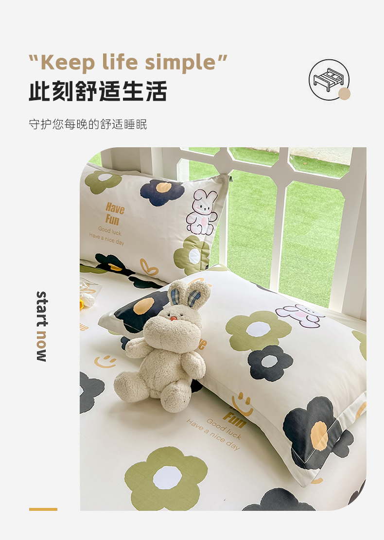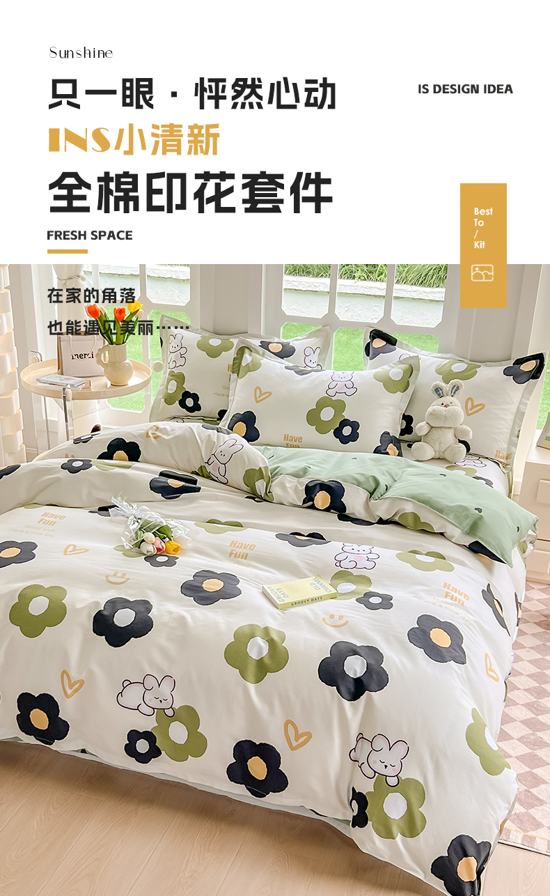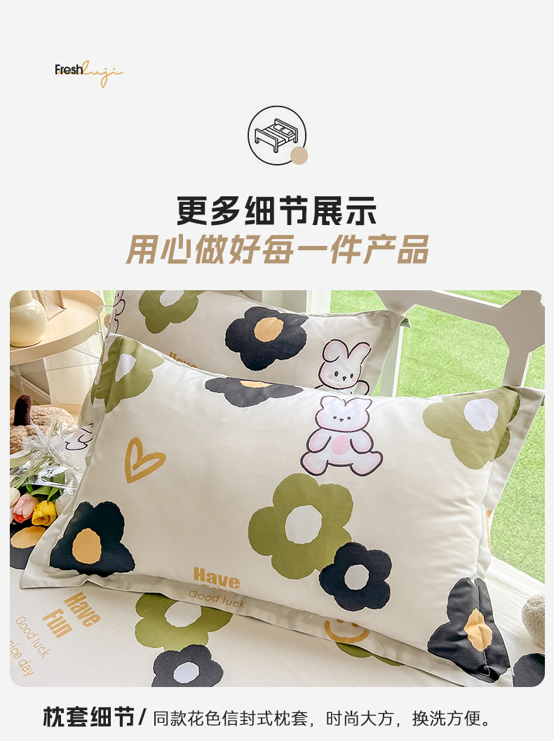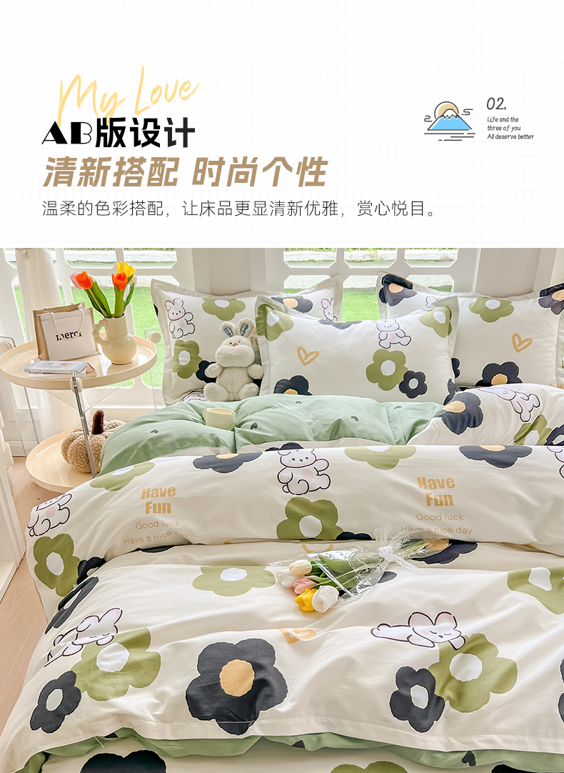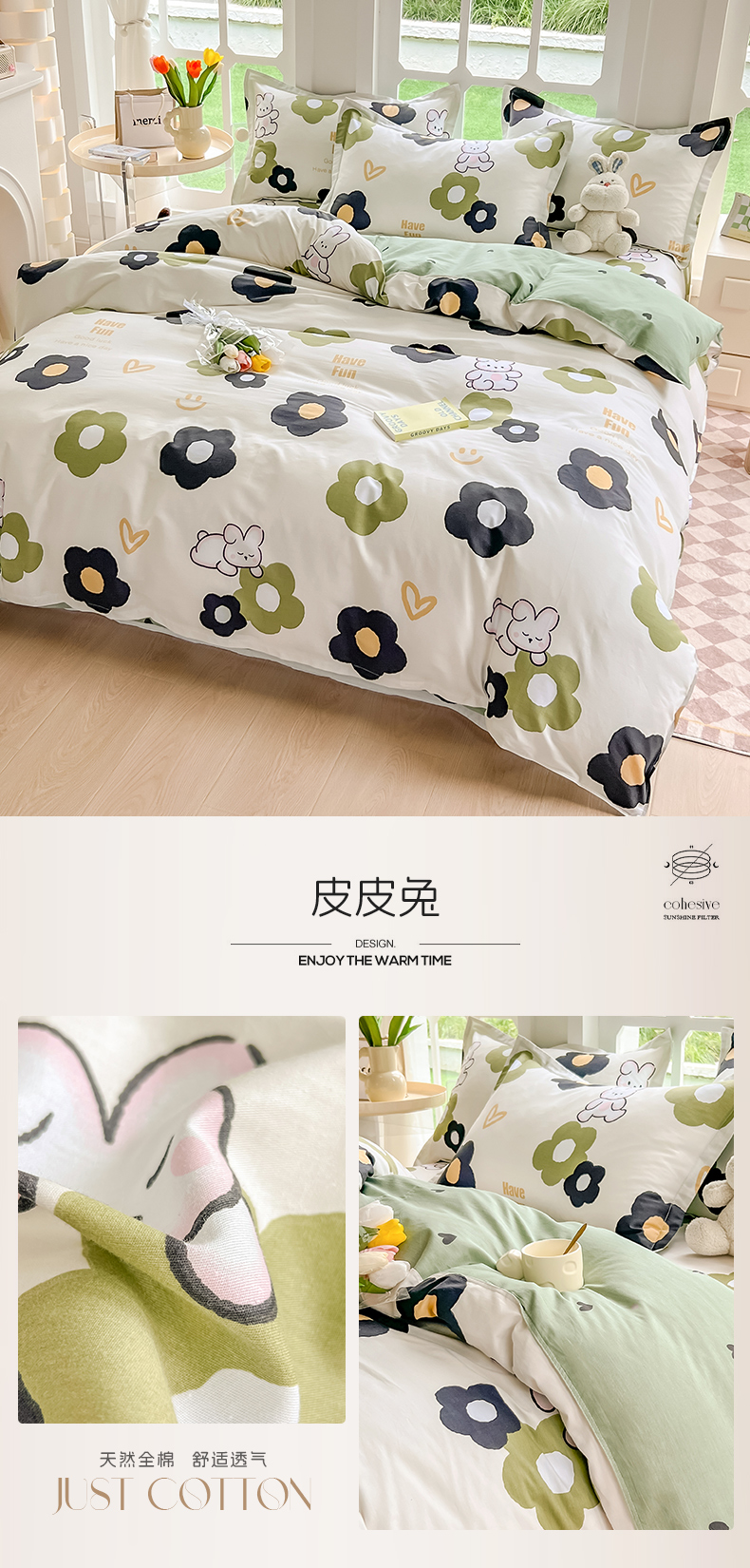 当前位置: 91家纺网 > 商品网购 > 床品套件 > 四件套 > 全棉普通四件套 > 绵庭家纺 2023新款12868系列全棉小清新印花四件套 皮皮兔