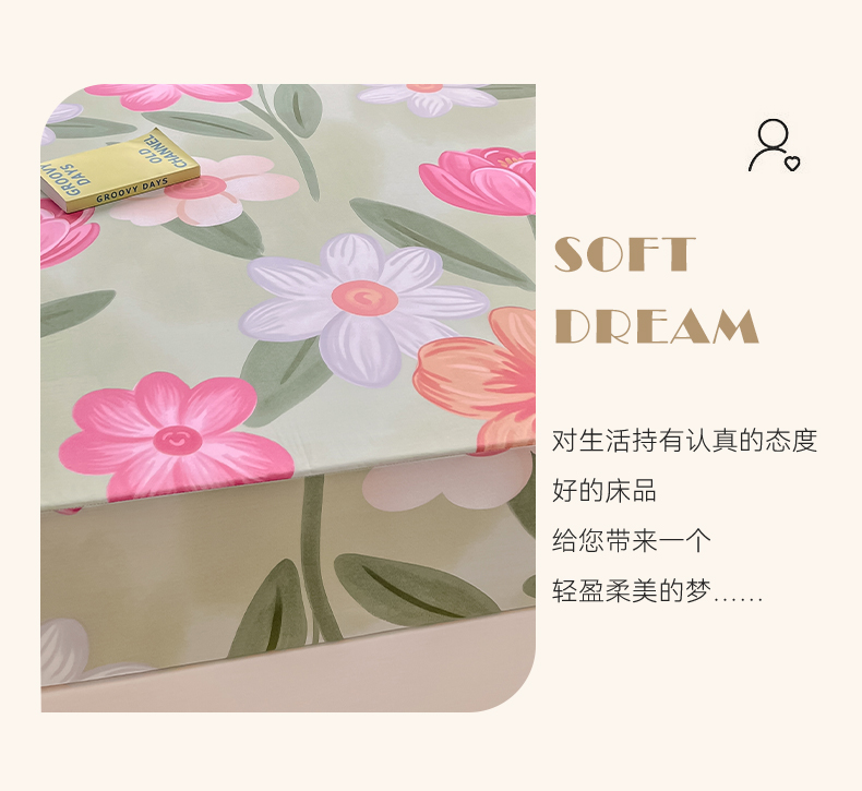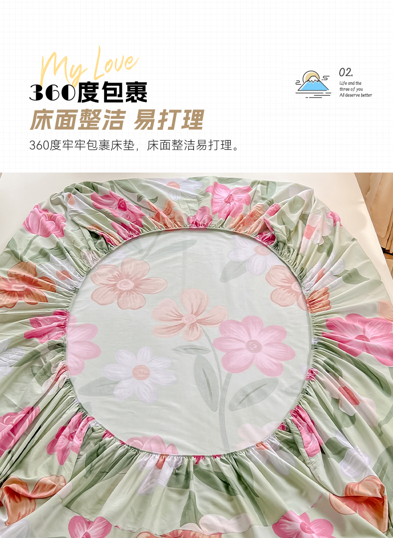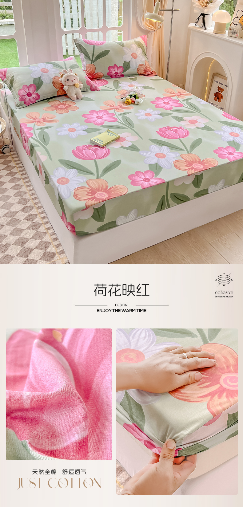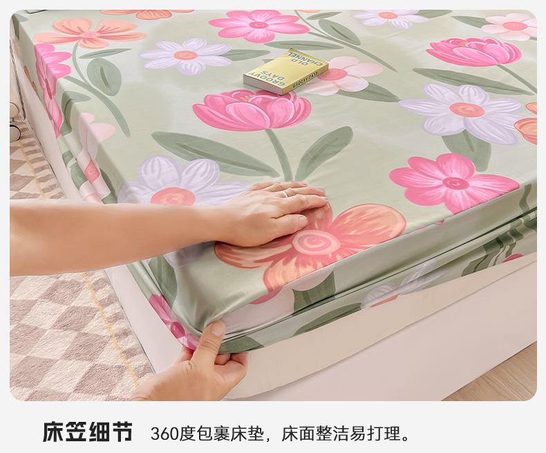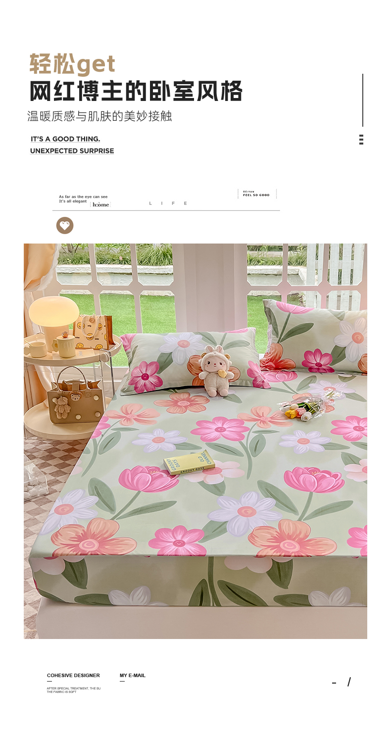 绵庭家纺 2023新款12868系列全棉小清新印花单床笠 荷花映红