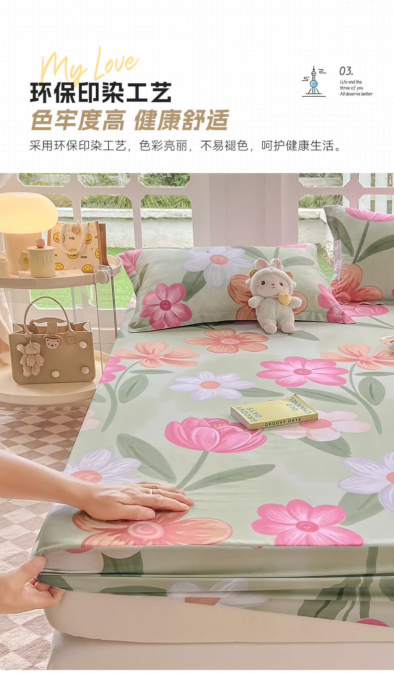 (总)绵庭家纺 2023新款12868系列全棉小清新印花单床笠,半夏花语,波比兔,初晴花语,丁香兔,荷花映红,可爱小象,恐龙贝贝,梅林春晓,茉莉幻想,皮皮兔,清风絮语,森林狂欢,香草之恋,雅卉,玉芙蓉 豆沙