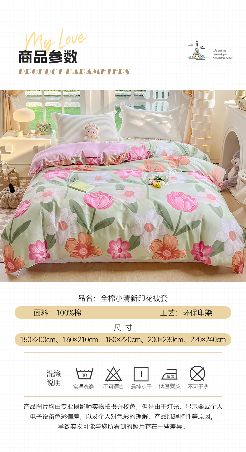 (总)绵庭家纺 2023新款12868系列全棉小清新印花单被套,半夏花语,波比兔,初晴花语,丁香兔,荷花映红,可爱小象,恐龙贝贝,梅林春晓,茉莉幻想,皮皮兔,清风絮语,森林狂欢,香草之恋,雅卉,玉芙蓉 豆沙