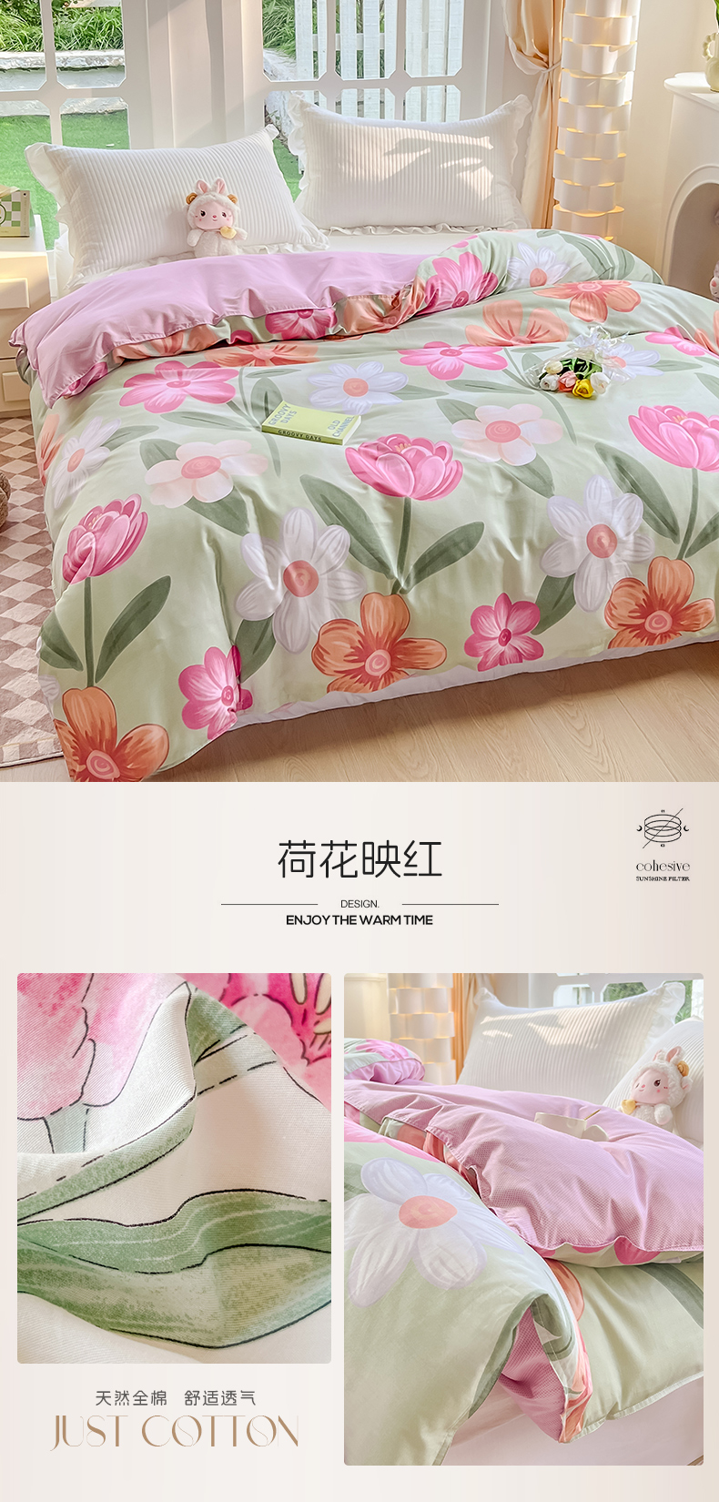 商品名称:绵庭家纺 2023新款12868系列全棉小清新印花单被套 荷花映红
