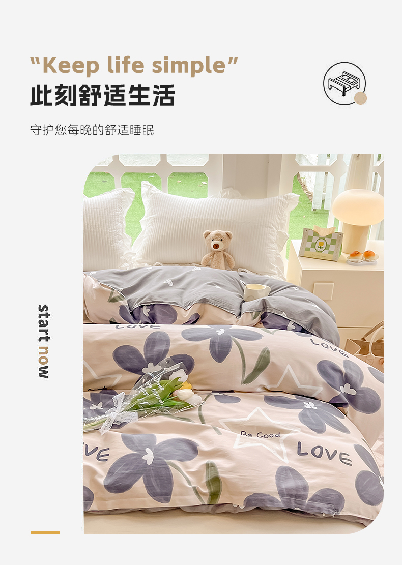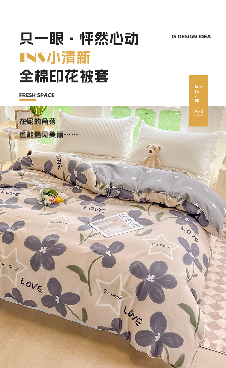 绵庭家纺 2023新款12868系列全棉小清新印花单被套 雅卉