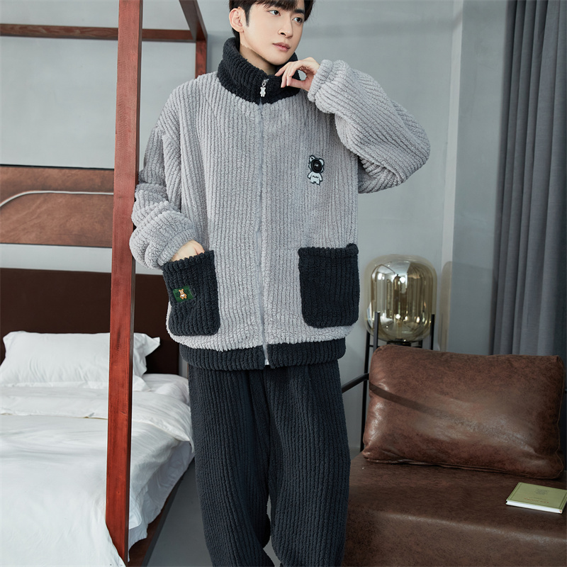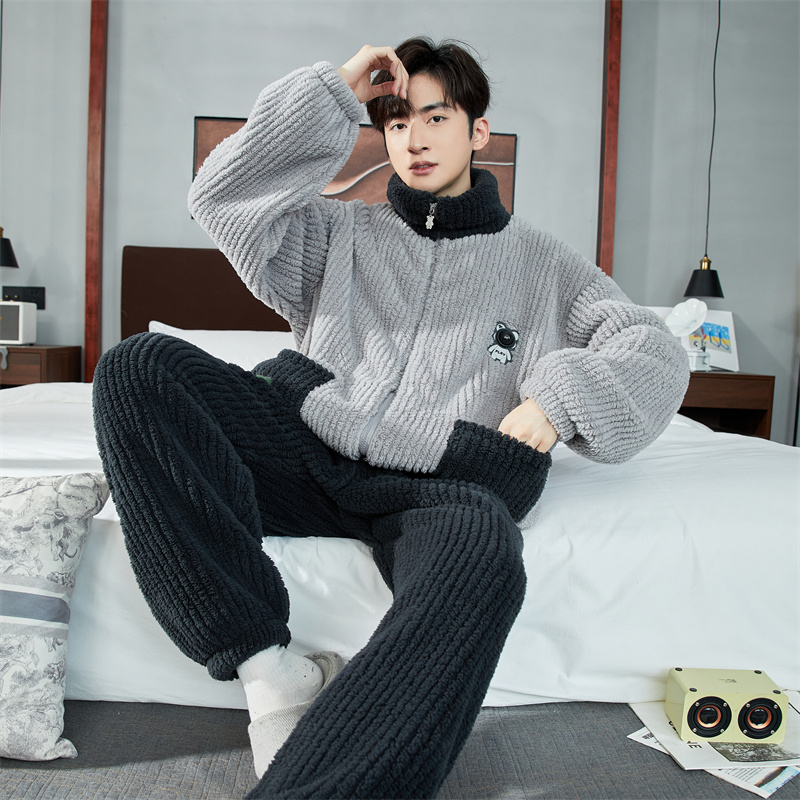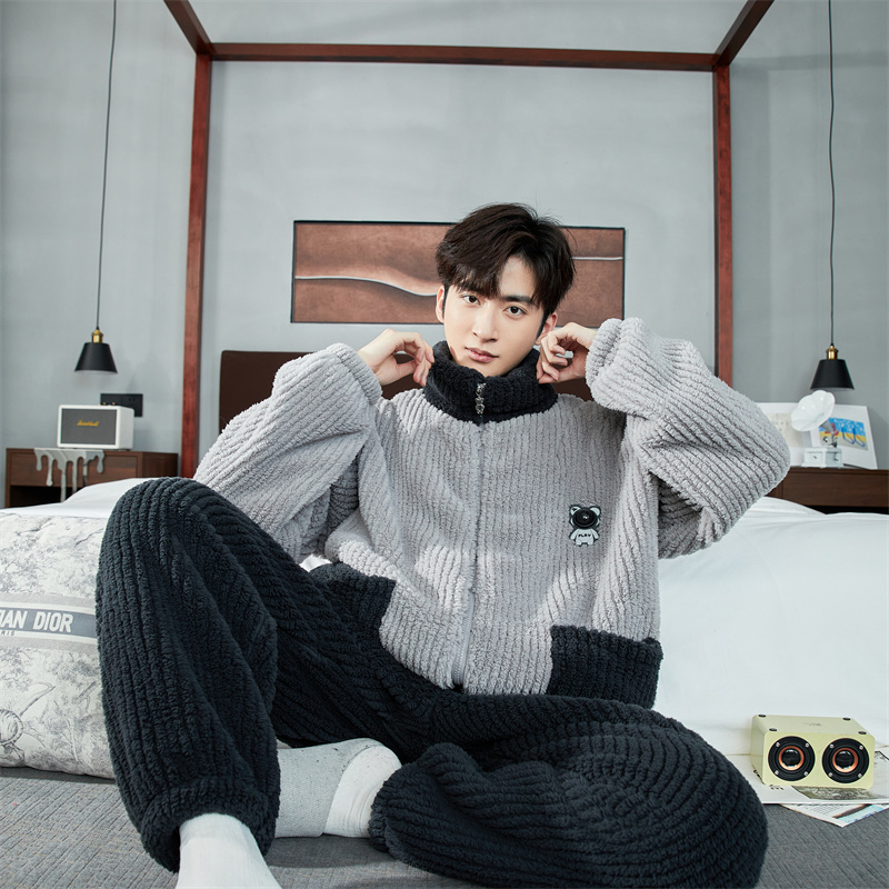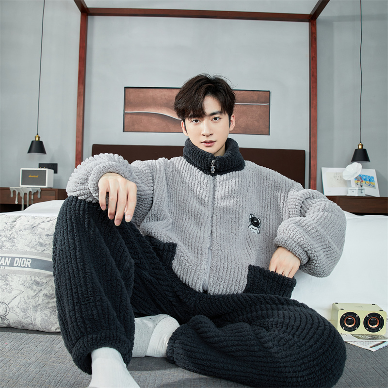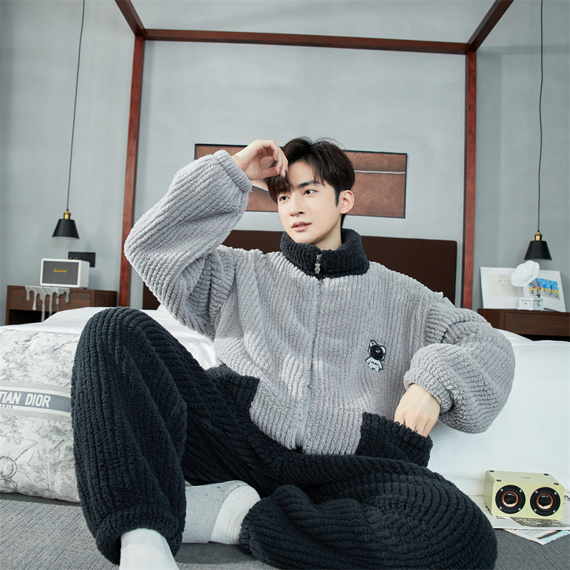 (总)洛兰沙家居馆 2025新款现货男士睡衣冬季珊瑚绒拉链三层夹棉加厚加绒套装秋冬款,1,4,3,4,5,6,7