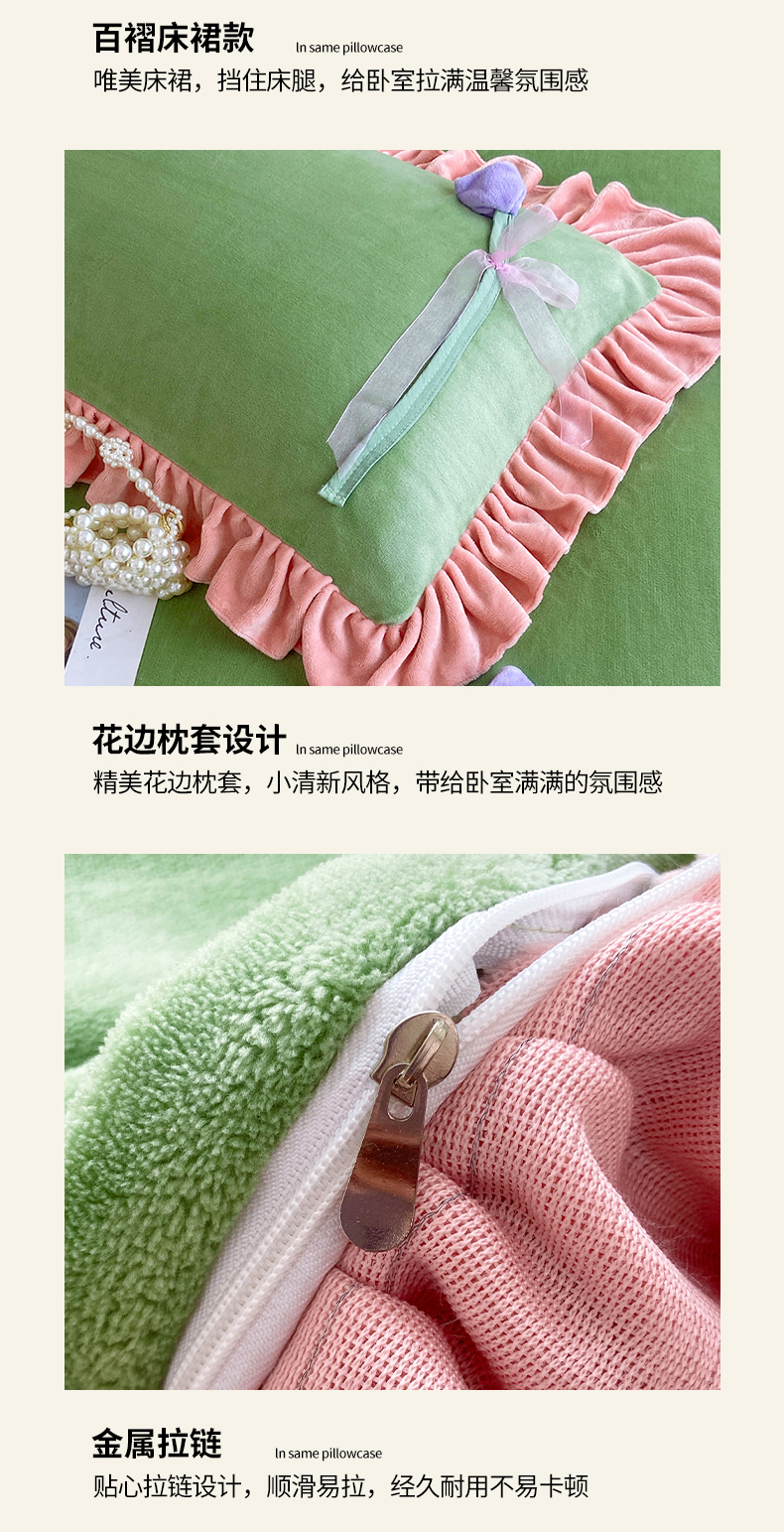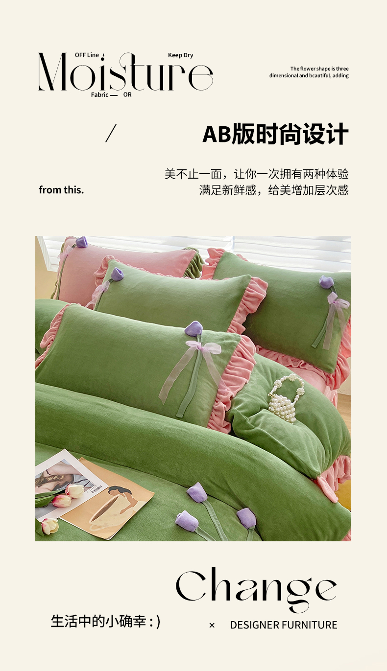 (总)言熙居家纺 2025新款A类兔毛绒韩版卡通花边四件套,蝴蝶结,幻蝶,墨枝,休闲一刻,映春,花眠