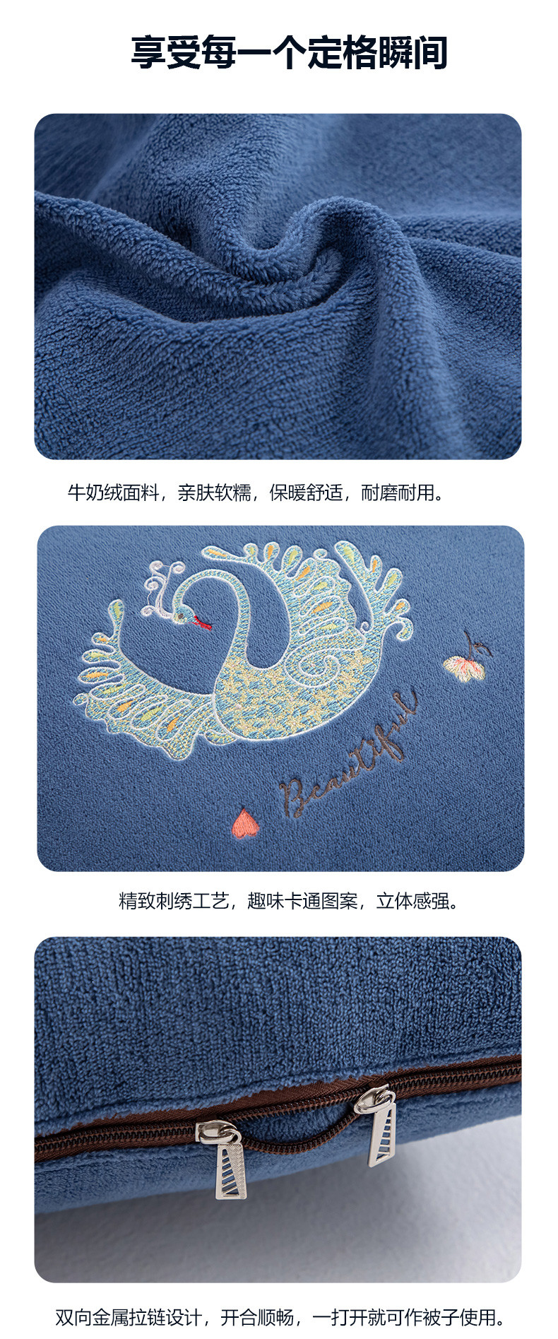 翰轩家居 2023新款牛奶绒轻奢大牌风刺绣抱枕被 洛兮-丹宁蓝