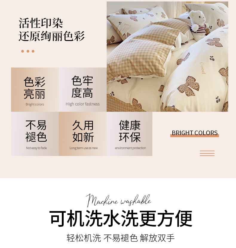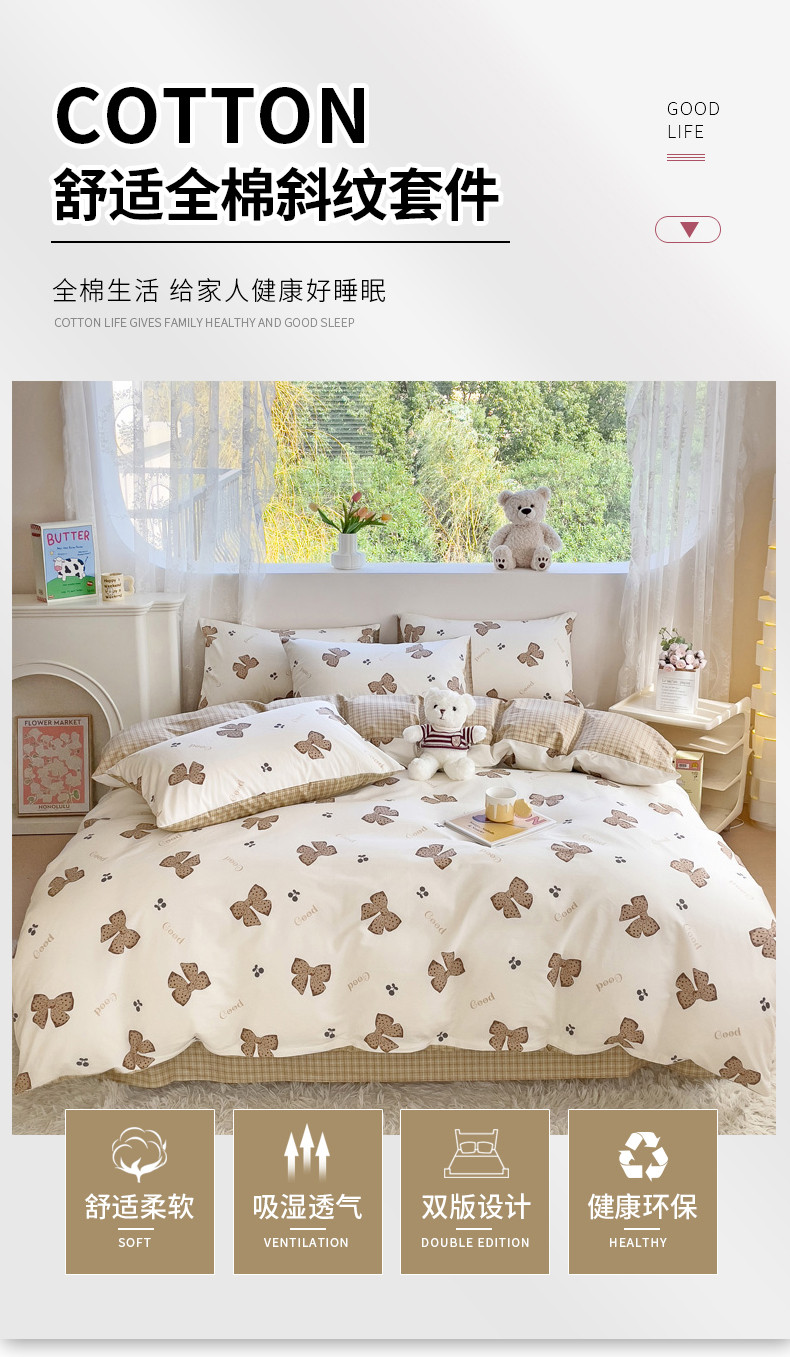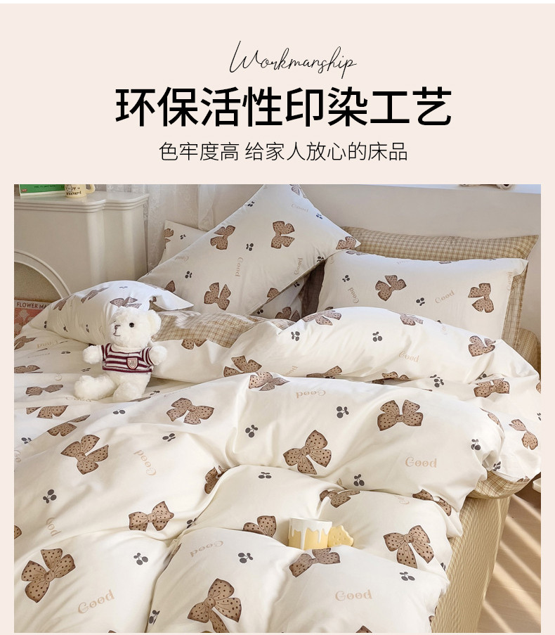 当前位置: 91家纺网 > 商品网购 > 床品套件 > 四件套 > 全棉普通四件套 > 金丝鸟 2023新款全棉可爱卡通印花小清新四件套-第二批 斑点蝴蝶结