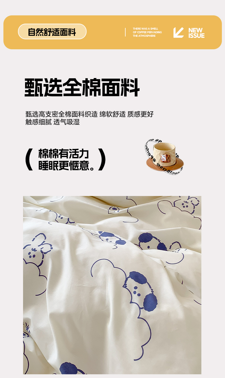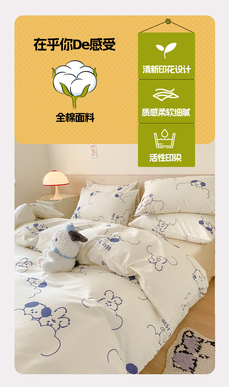 商品名称:澳萝拉 2024新款全棉印花亲肤舒适四件套 云朵小熊