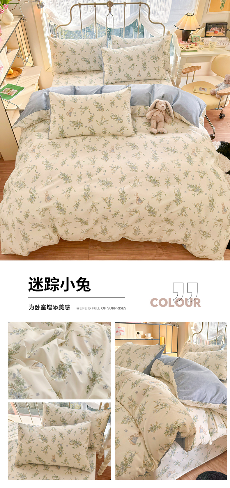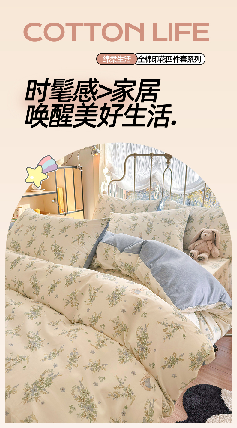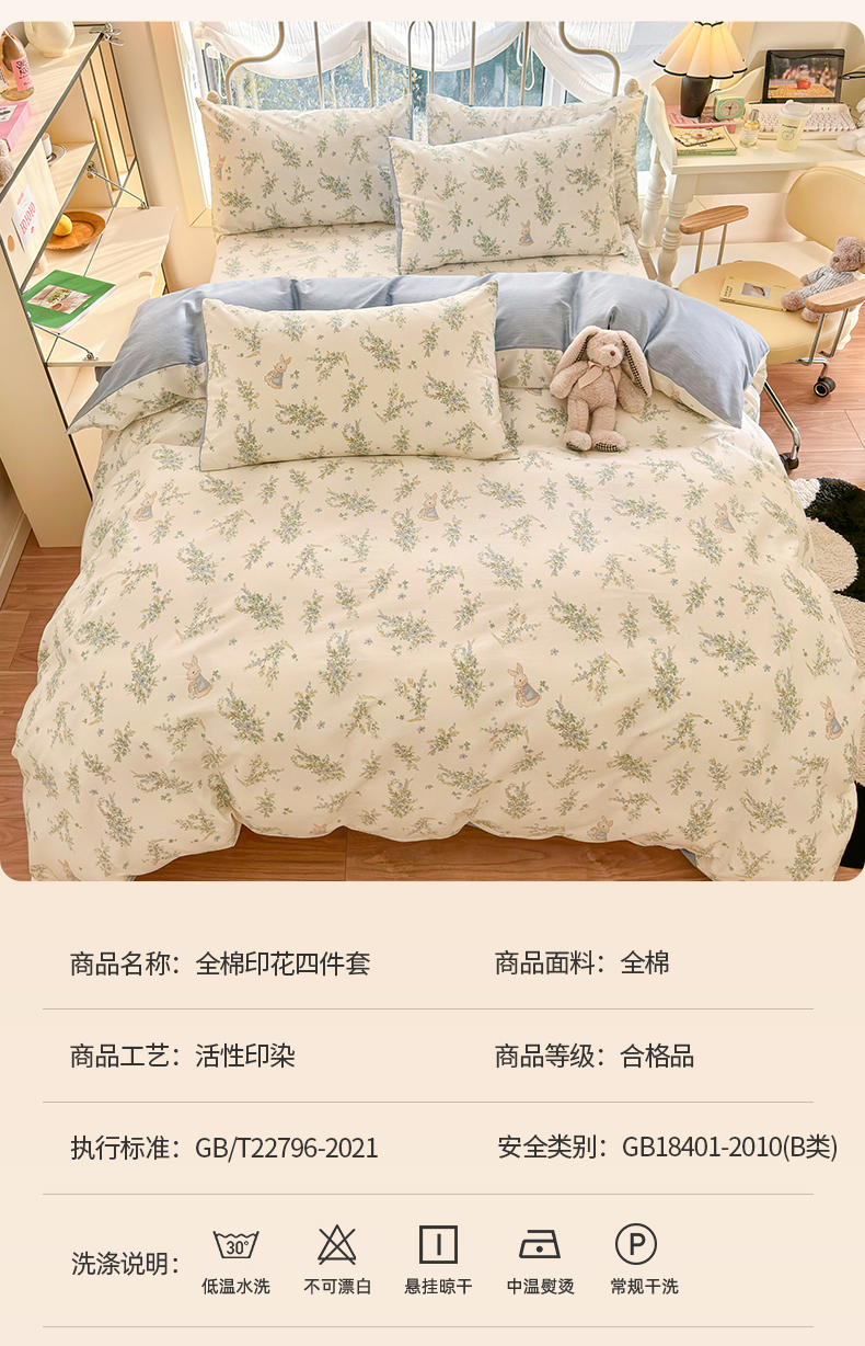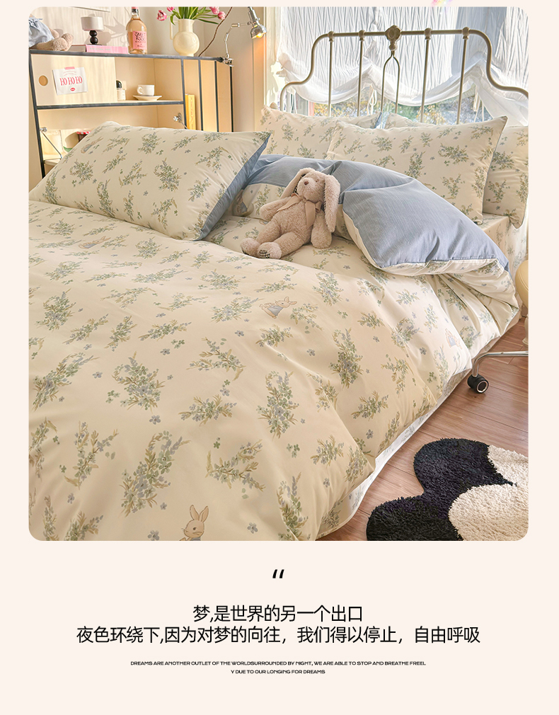当前位置: 91家纺网 > 商品网购 > 床品套件 > 四件套 > 全棉普通四件套 > 名兮家居 2024新款卡通风系列全棉四件套 迷踪小兔