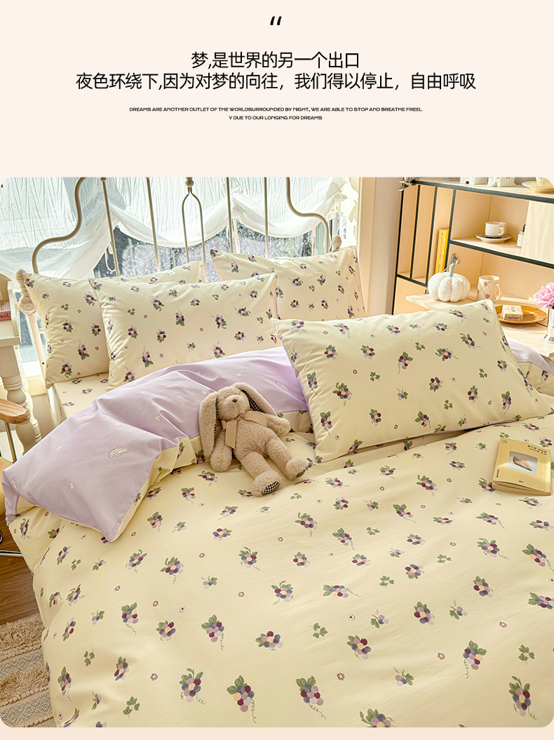 当前位置: 91家纺网 > 商品网购 > 床品套件 > 四件套 > 全棉普通四件套 > 名兮家居 2024新款卡通风系列全棉四件套 紫葡萄