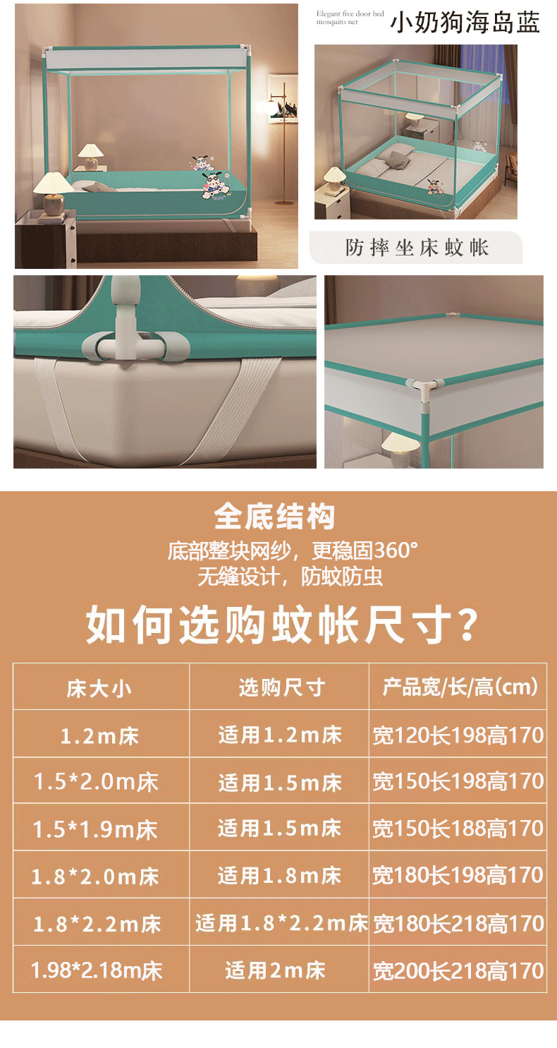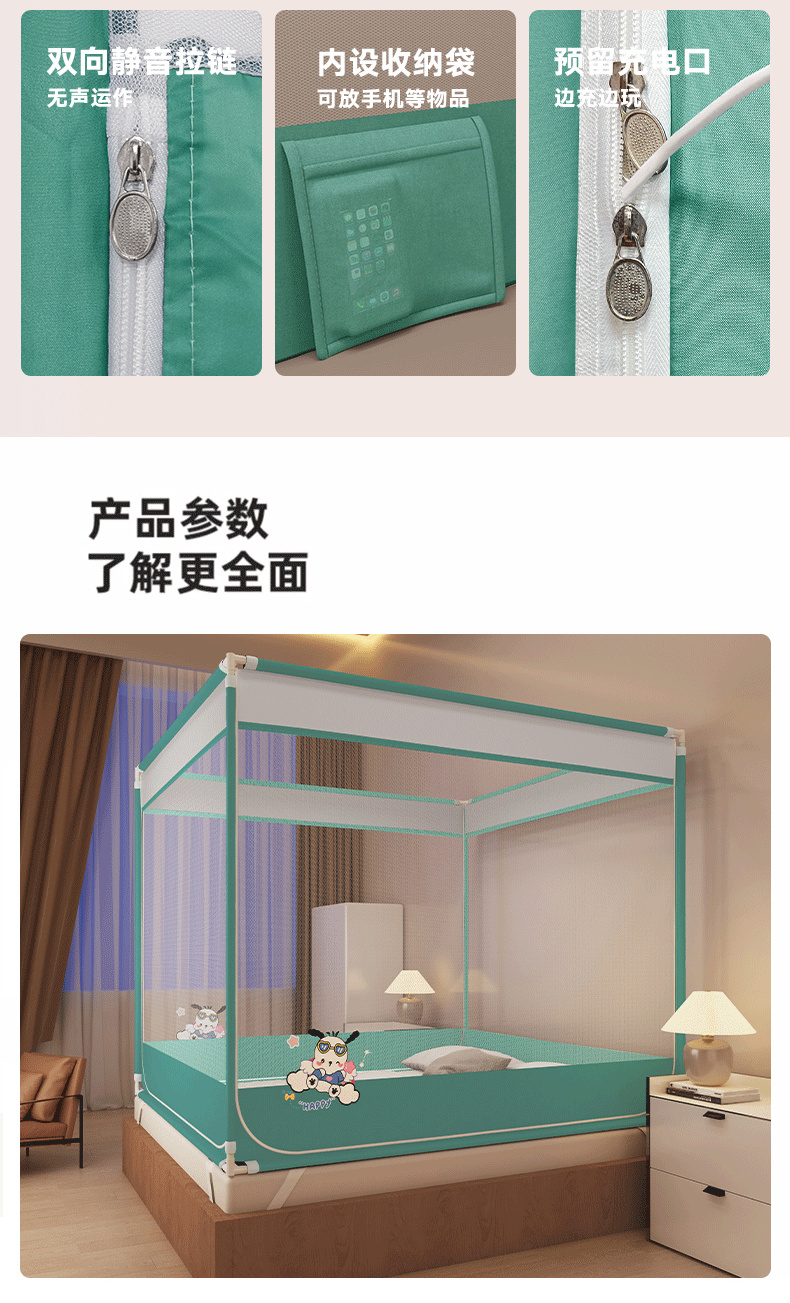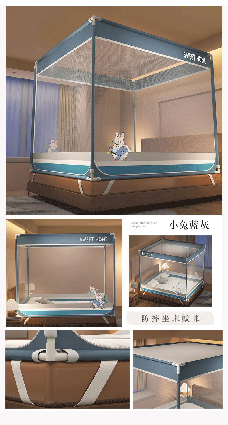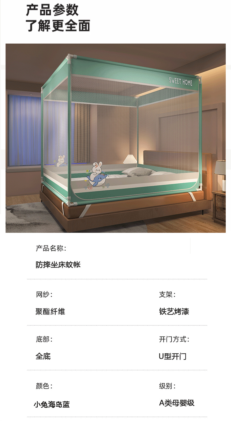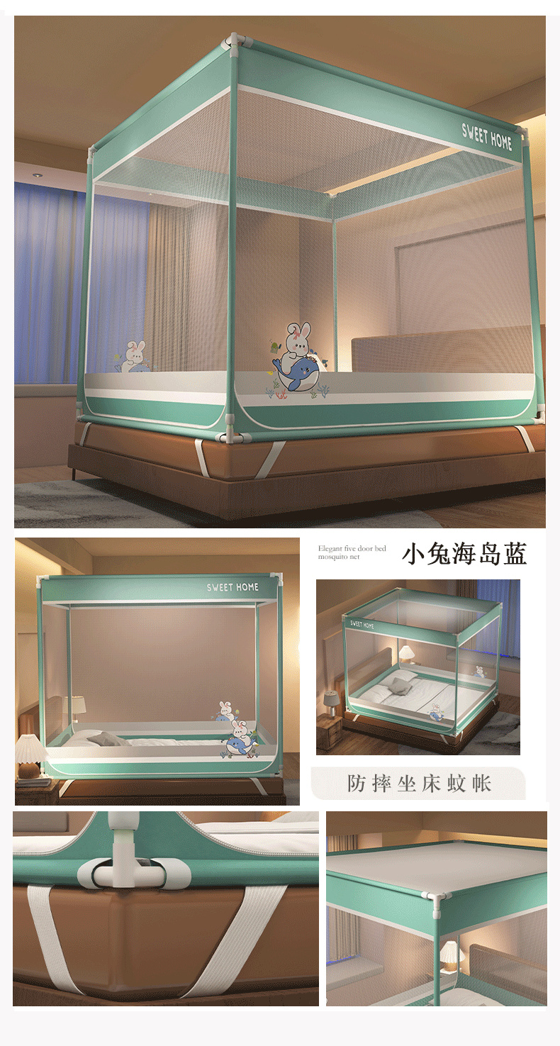 当前位置: 91家纺网 > 商品网购 > 床上用品 > 蚊帐 > 坐床式蚊帐 > 迪凡保罗蚊帐 2025新款2403小兔子外穿杆防摔坐床蚊帐 小兔海岛蓝