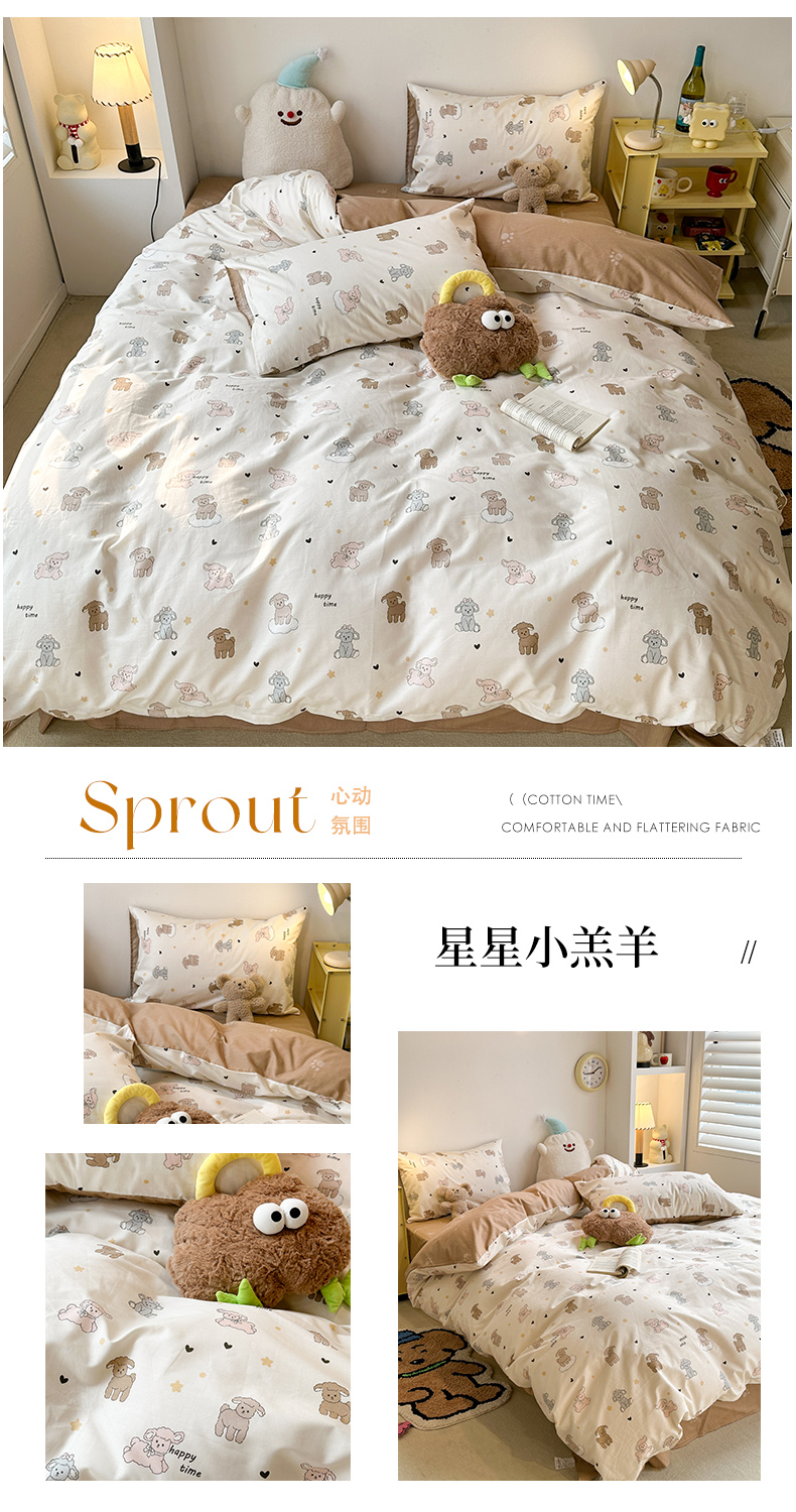 商品名称:昔可家纺 2024新款全棉萌趣卡通印花系列四件套 星星小羔羊