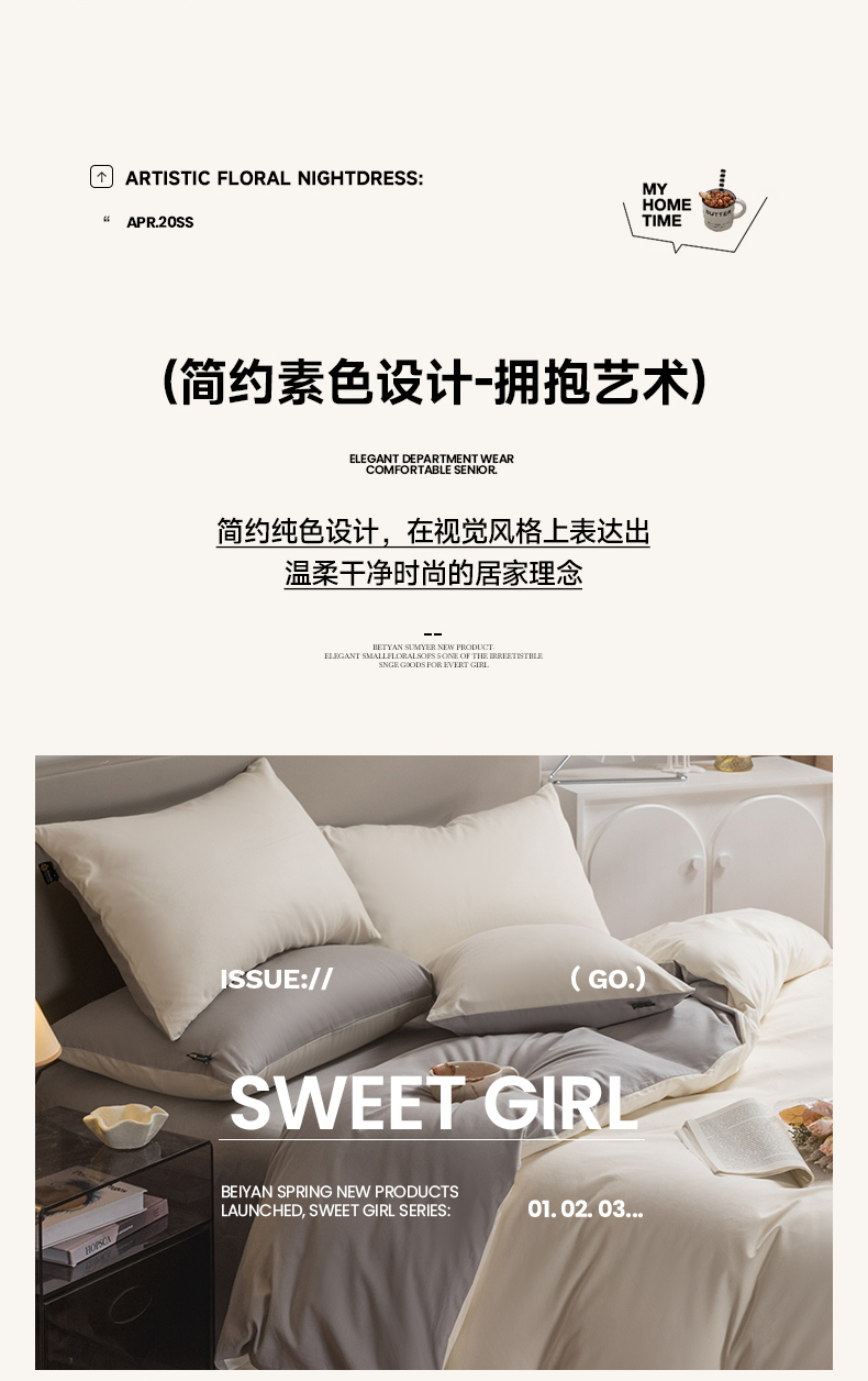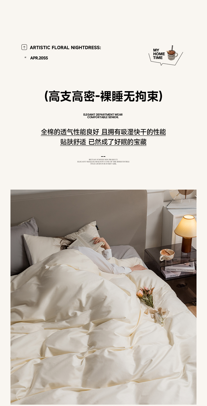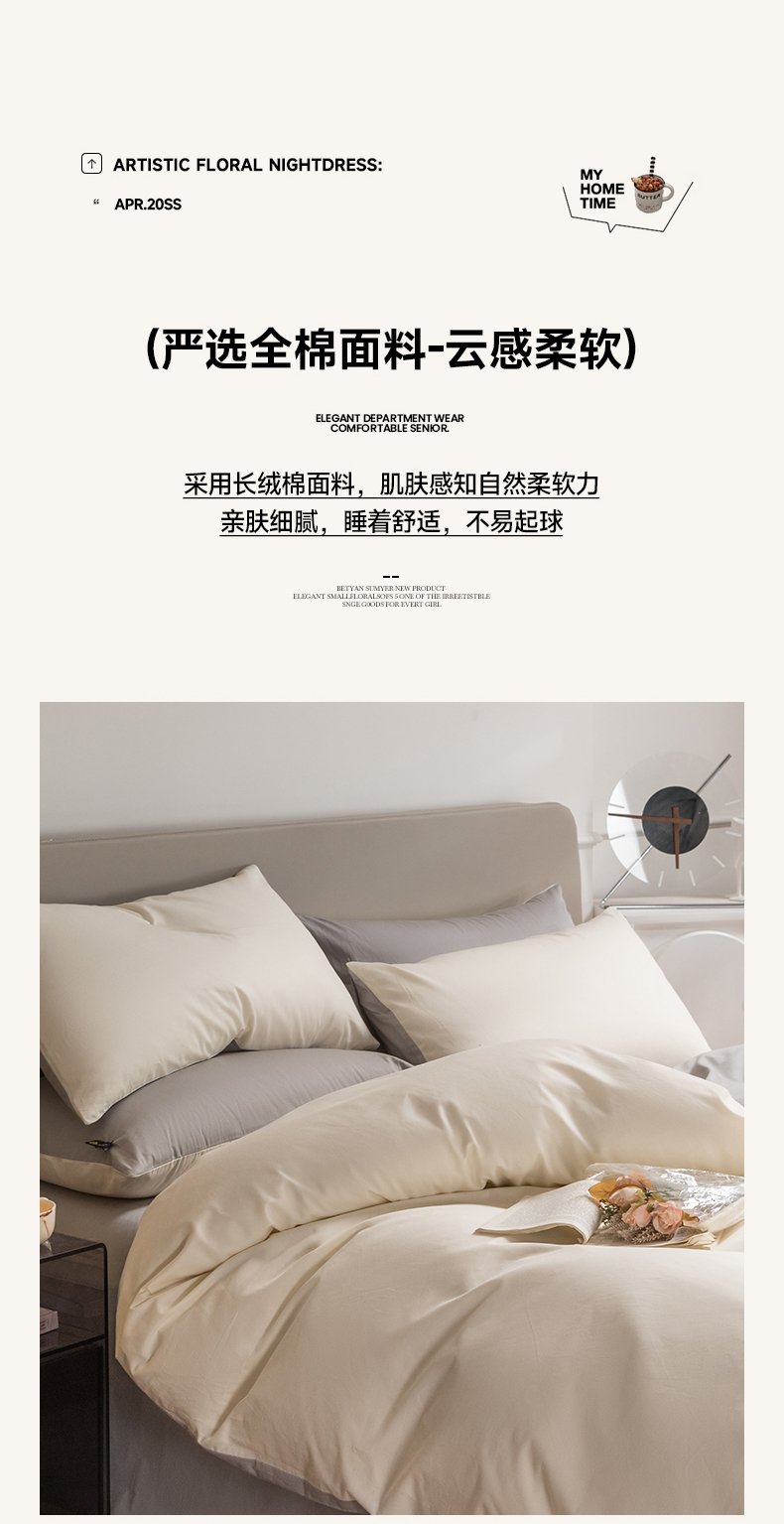 商品名称:澳梵家居 2024新款60支全棉纯色双拼金标款四件套-素写繁华系列 奶昔白-椰子灰