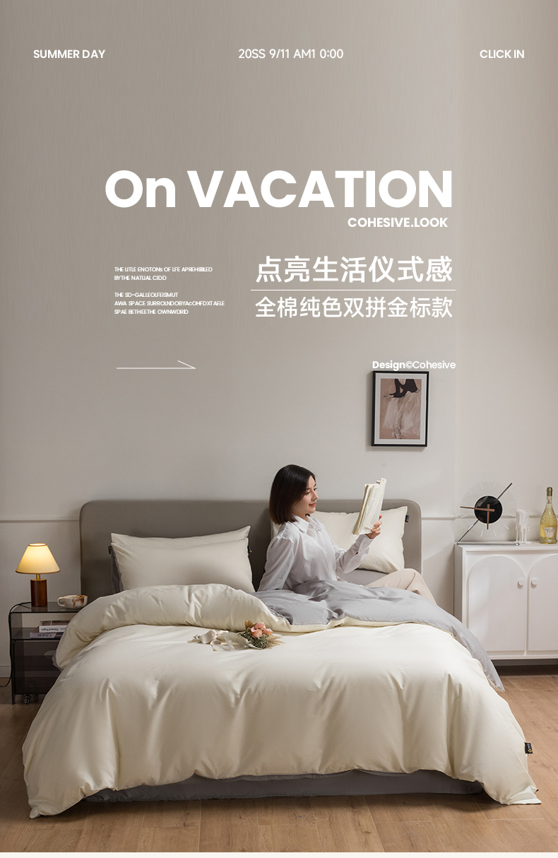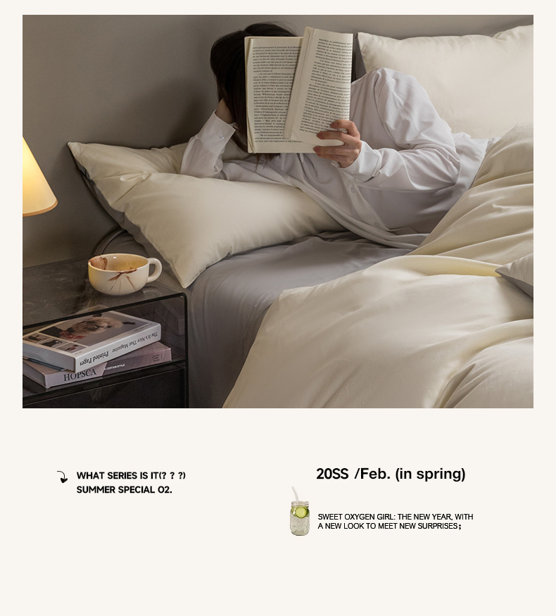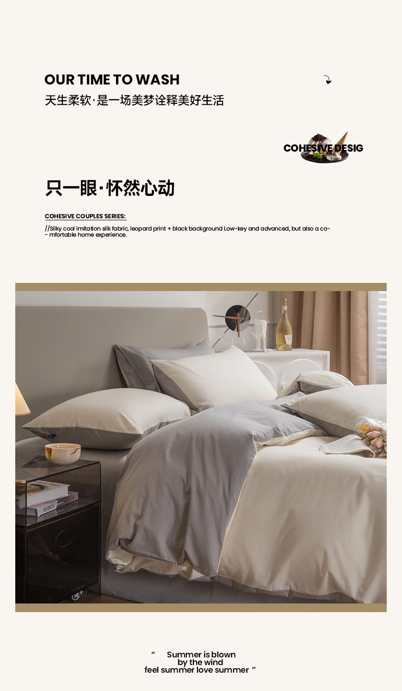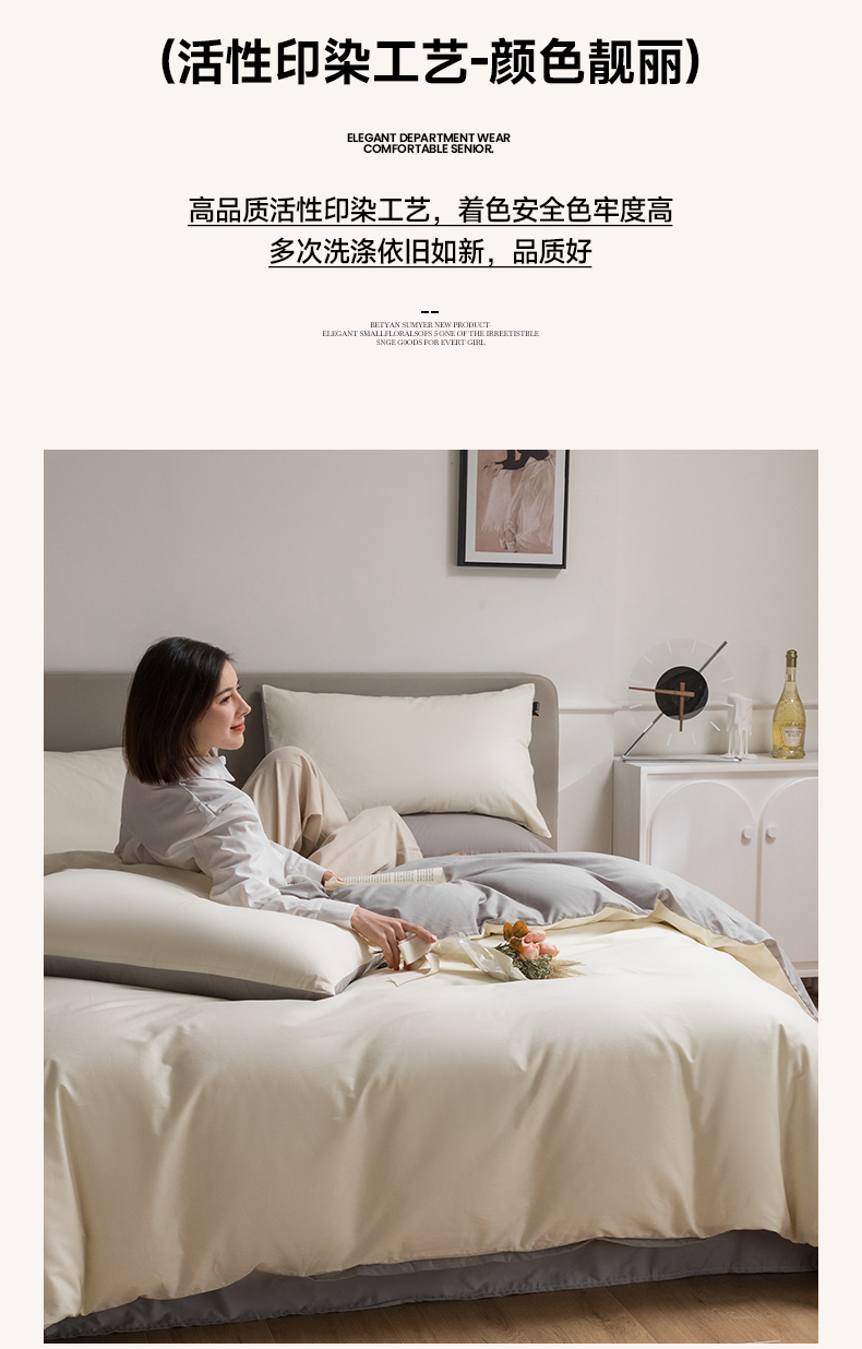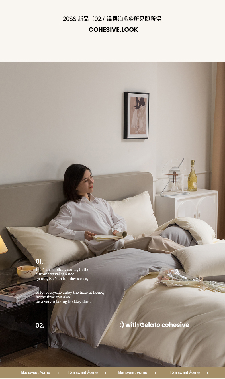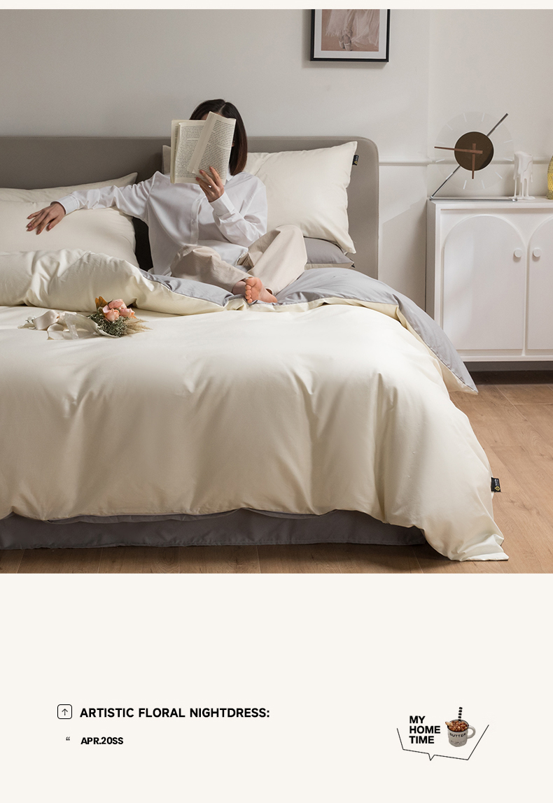 澳梵家居 2024新款60支全棉纯色双拼金标款四件套-素写繁华系列 奶昔白-椰子灰