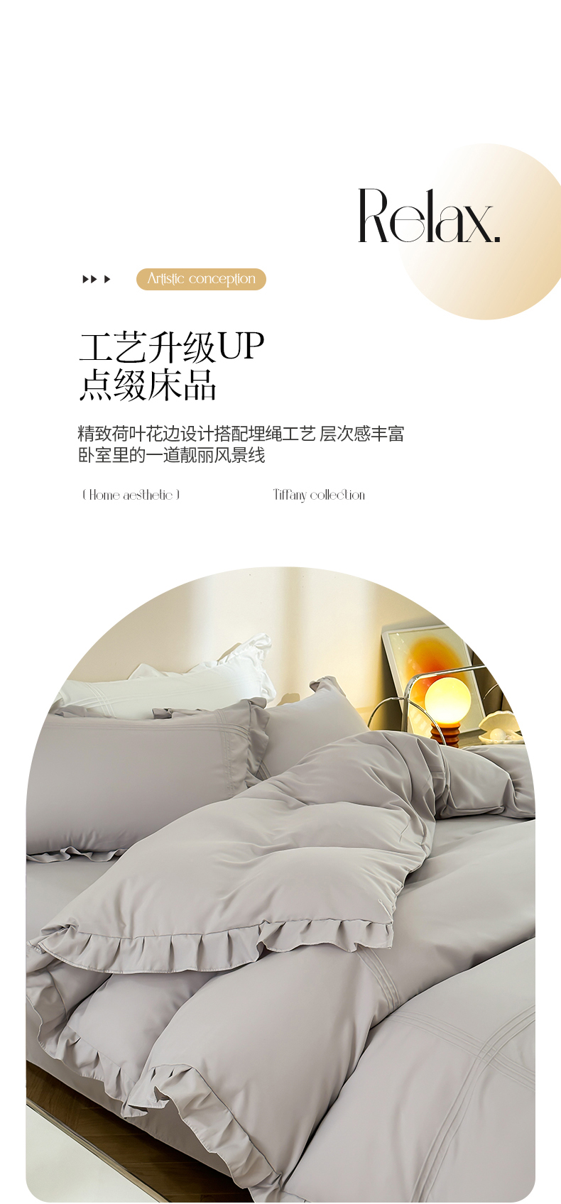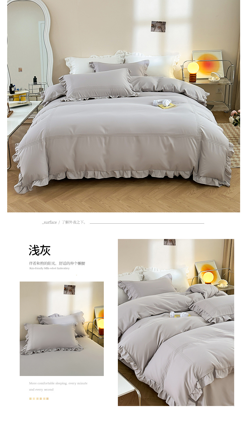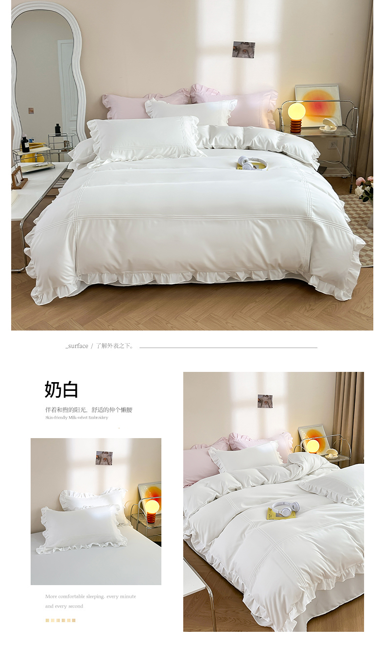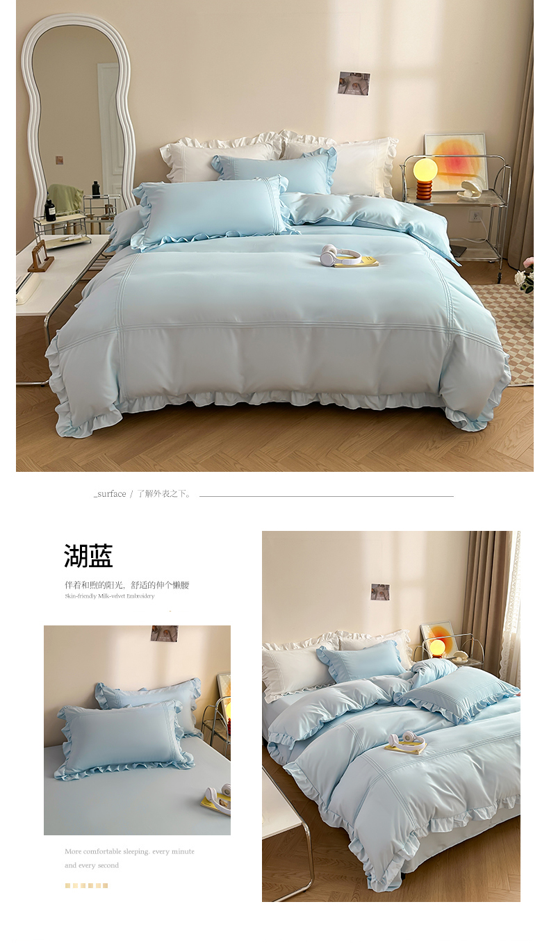 (总)绒兔兔 2021牛奶绒韩版揪花床裙四件套,潮蓝,豆绿,咖啡,魅紫,米白,嫩粉,深海蓝,太空灰,铁锈红,土黄