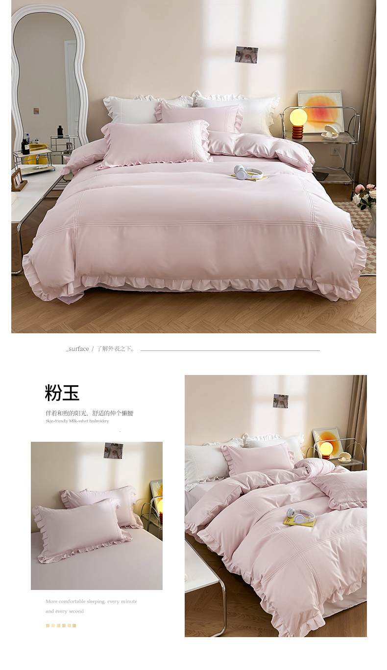 (总)绒兔兔 2022新款舒棉绒韩版床裙床单四件套提供买家秀,复古绿,玫瑰粉,香芋紫,樱花粉