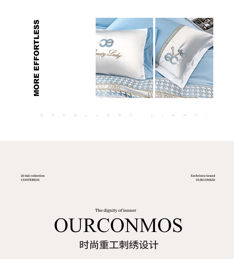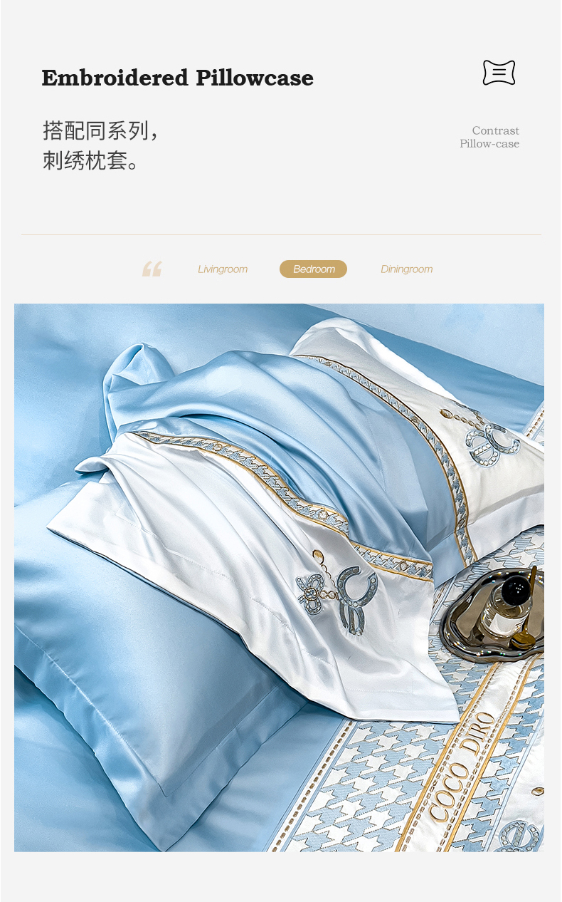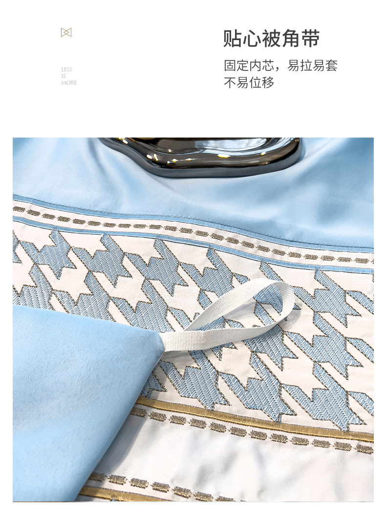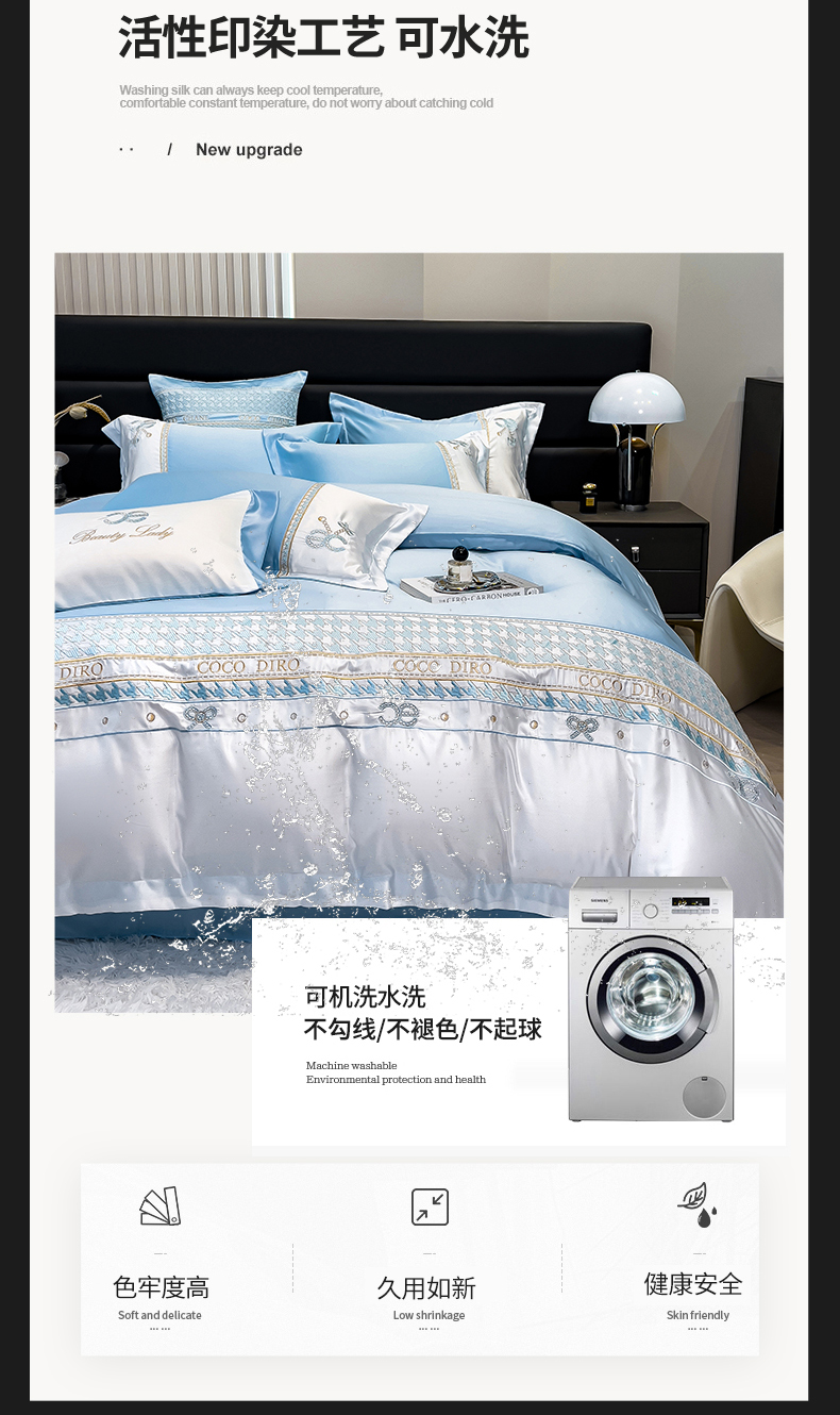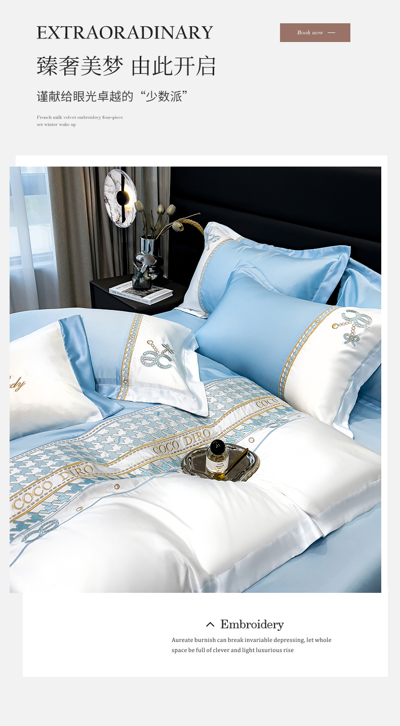欧冠家纺 2024新款绣花水洗真丝伊丽莎白四件套 伊丽莎白-梵星蓝