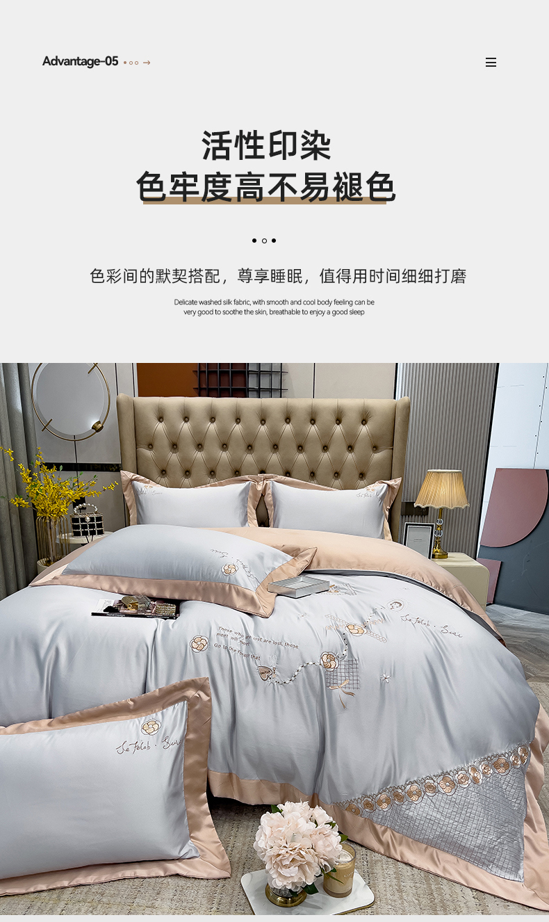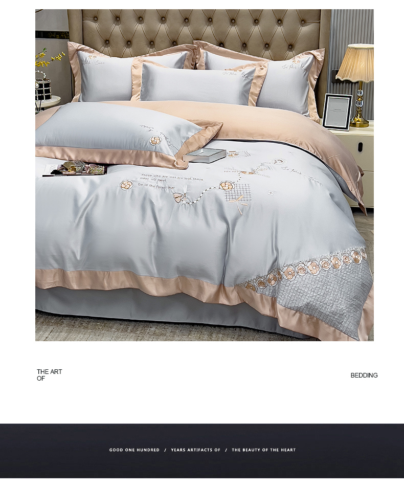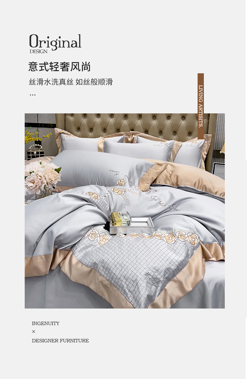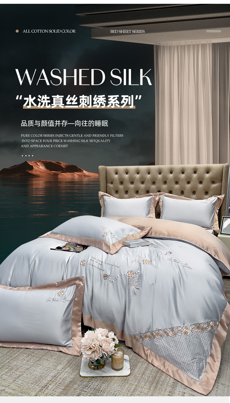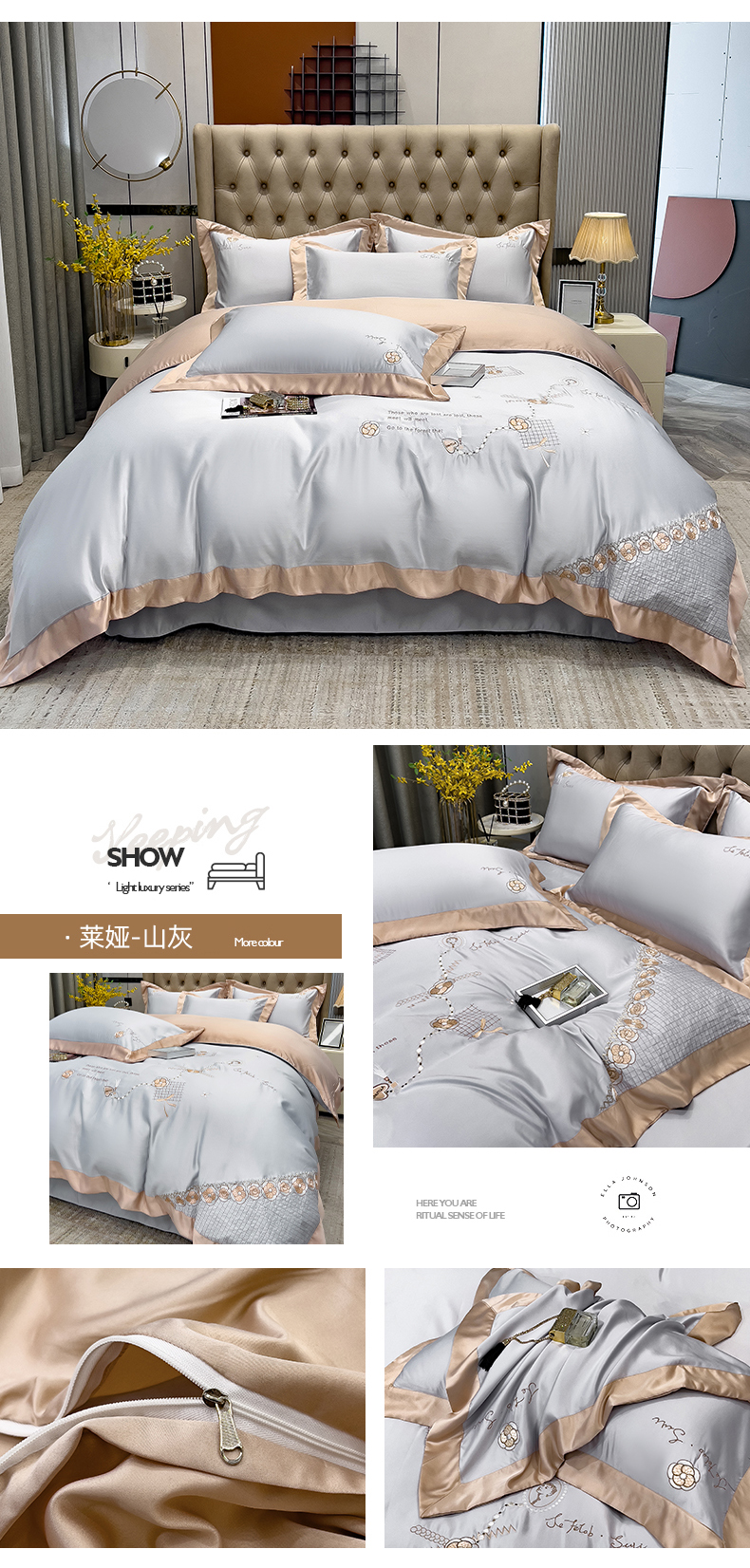 欧冠家纺 2024新款绣花水洗真丝四件套莱娅四件套 莱娅-山灰