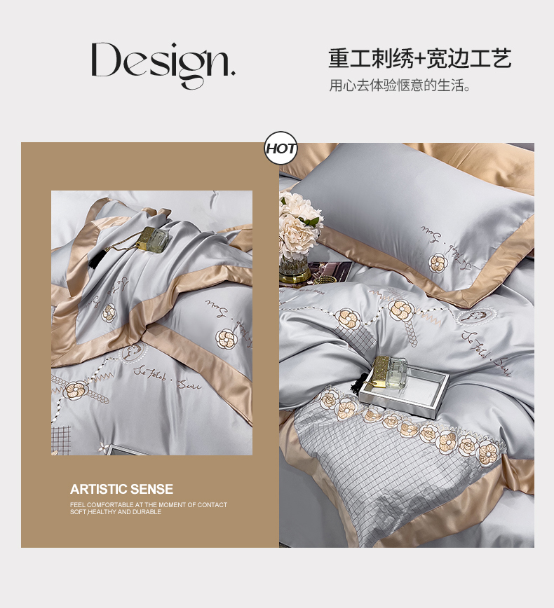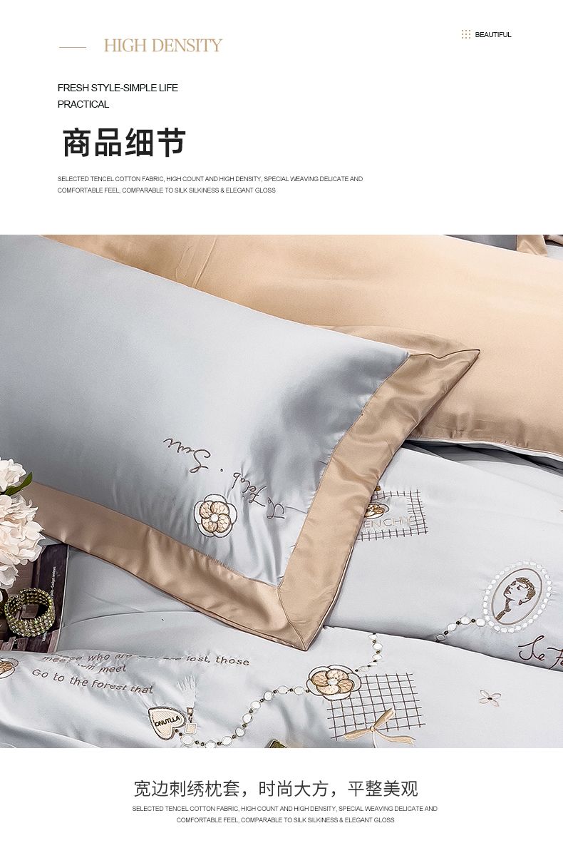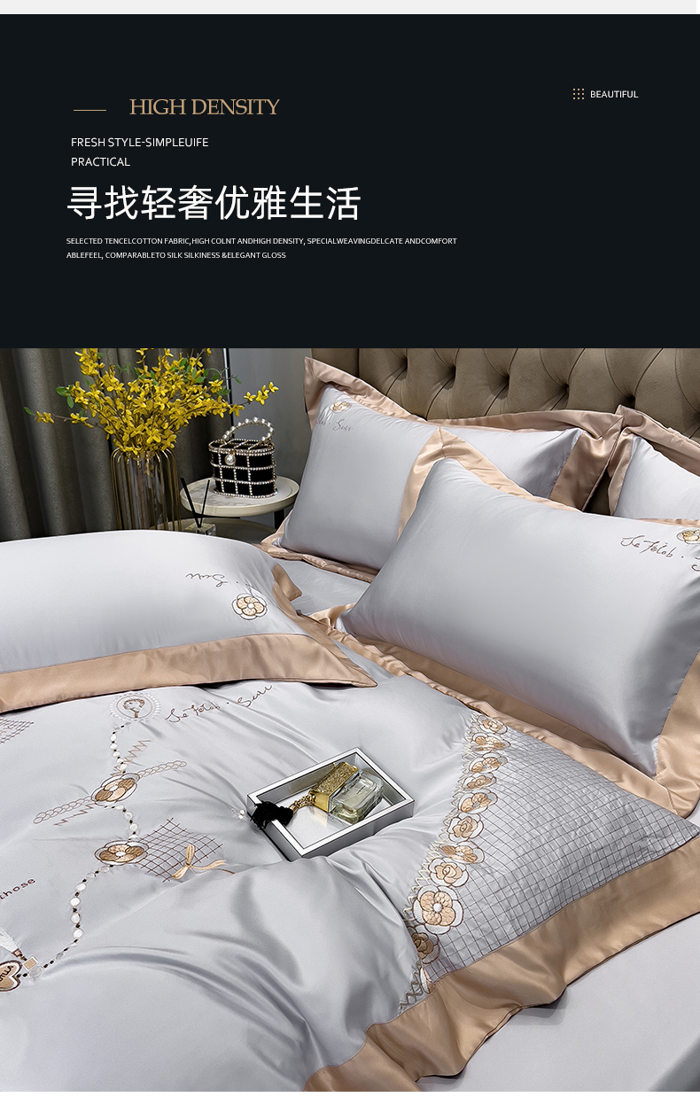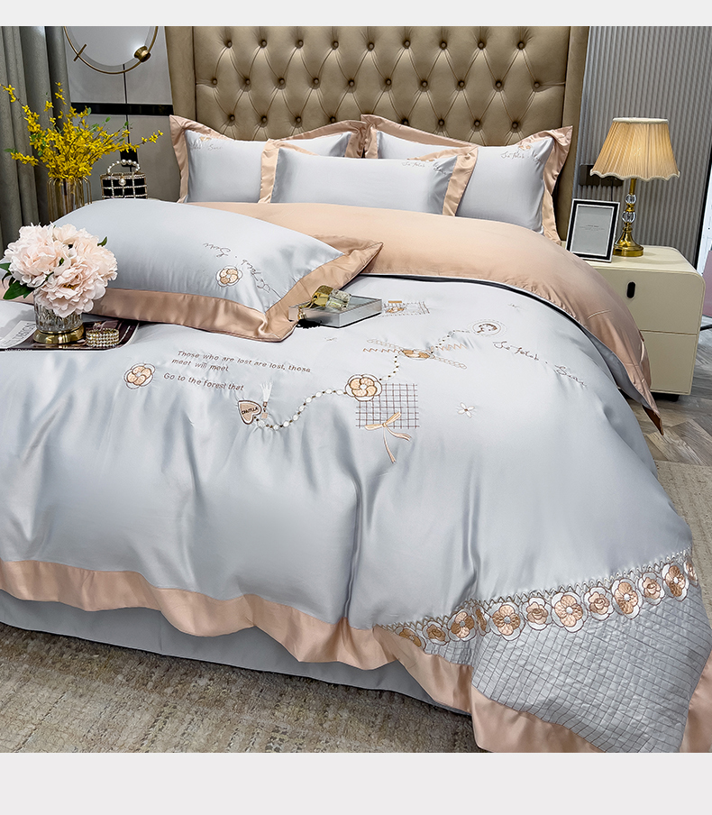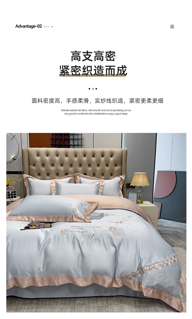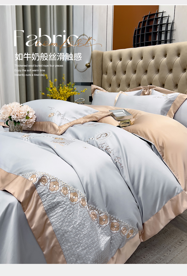 欧冠家纺 2024新款绣花水洗真丝四件套莱娅四件套 莱娅-山灰