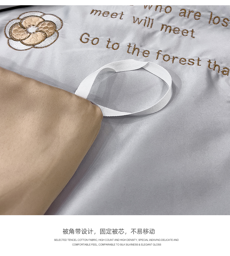 商品名称:欧冠家纺 2024新款绣花水洗真丝四件套莱娅四件套 莱娅-山灰