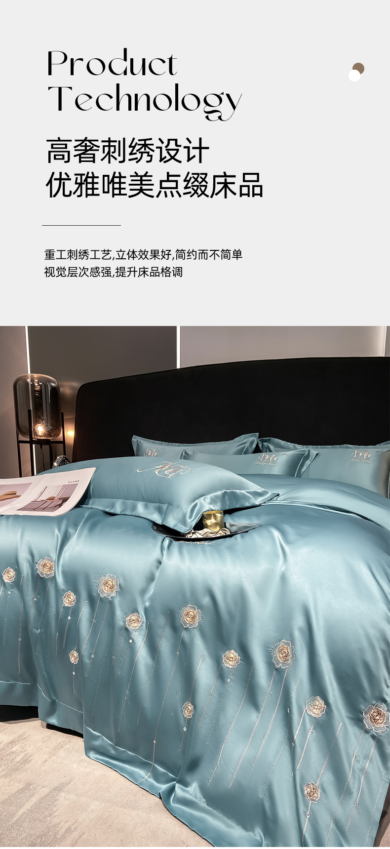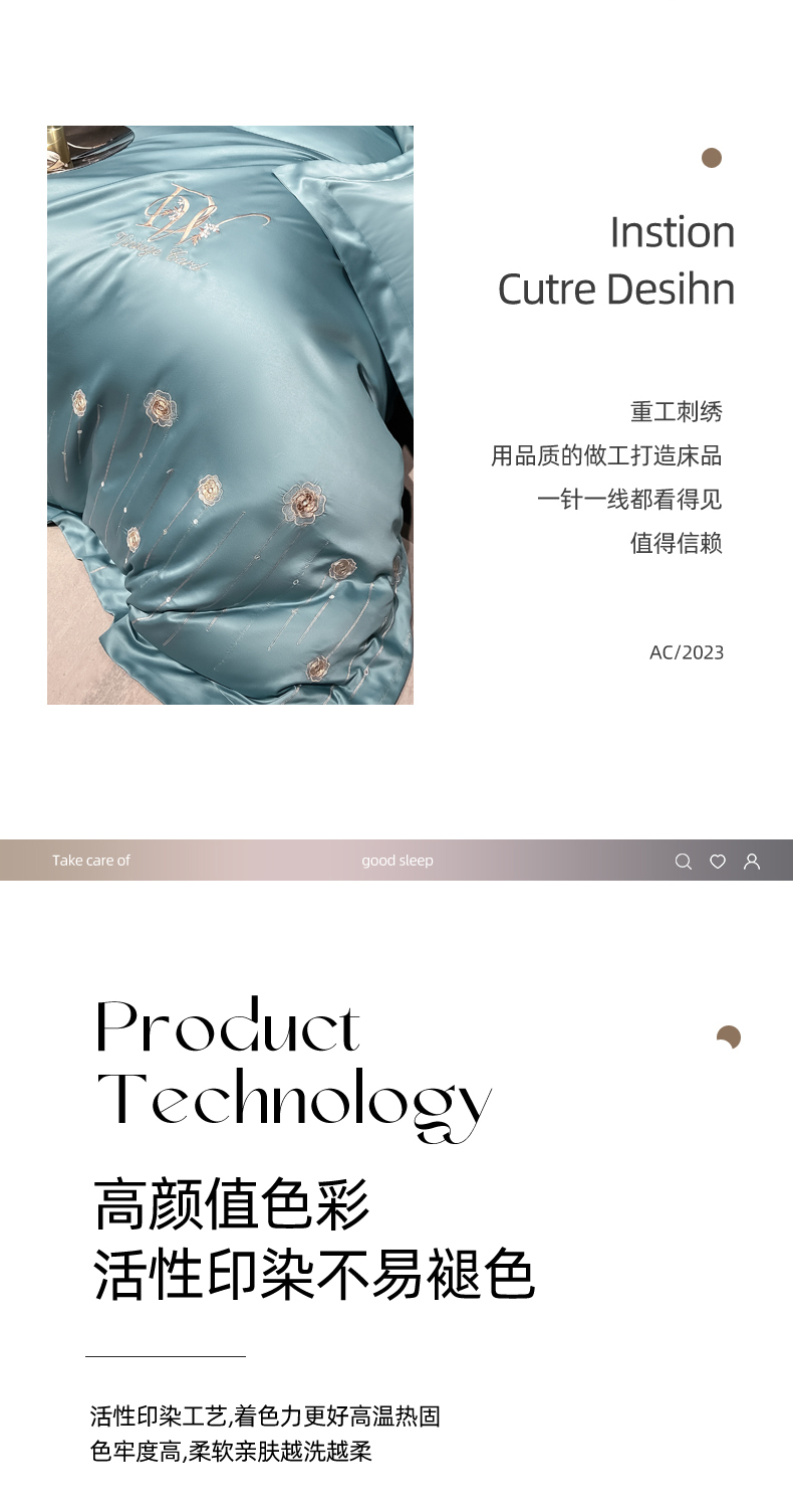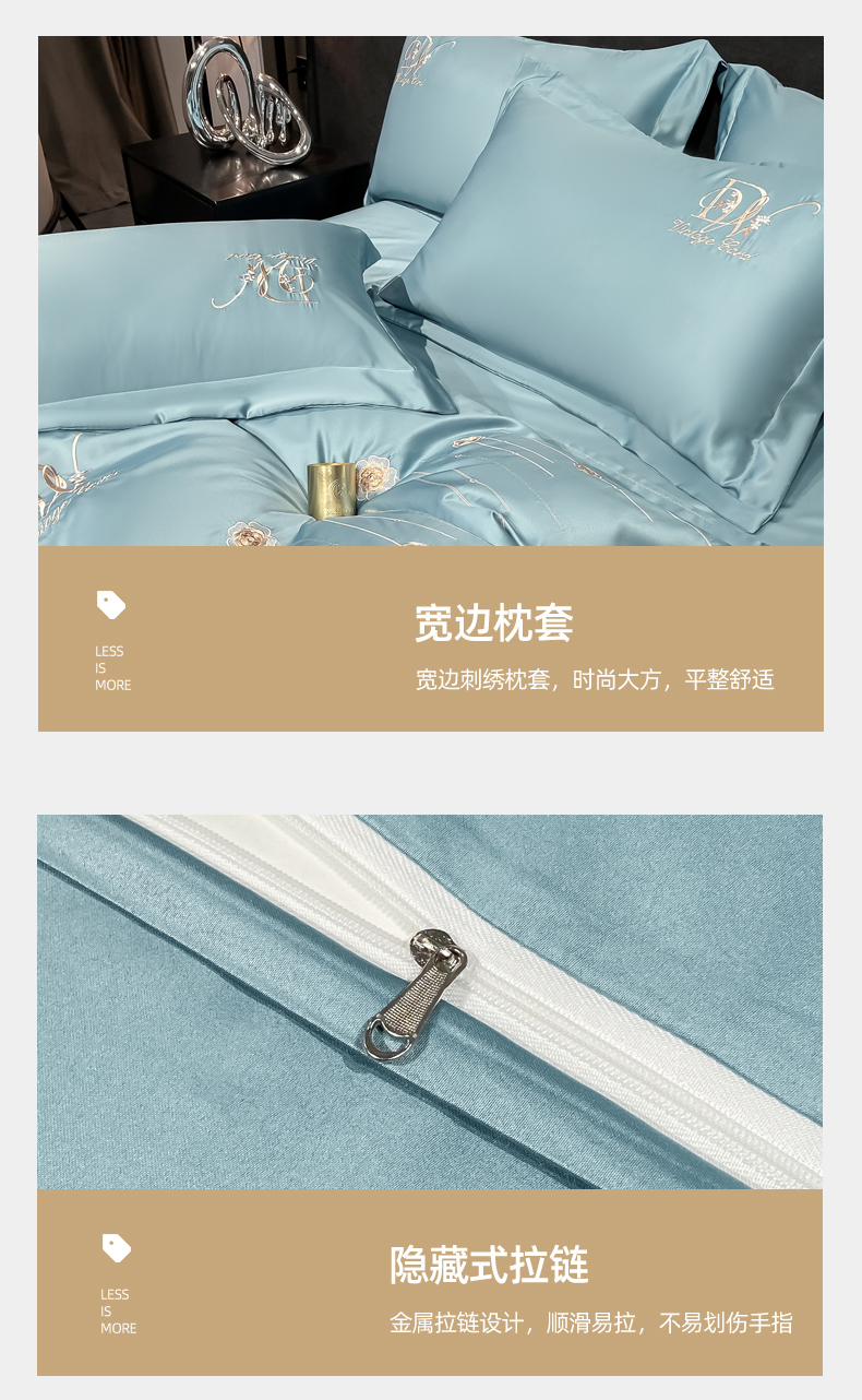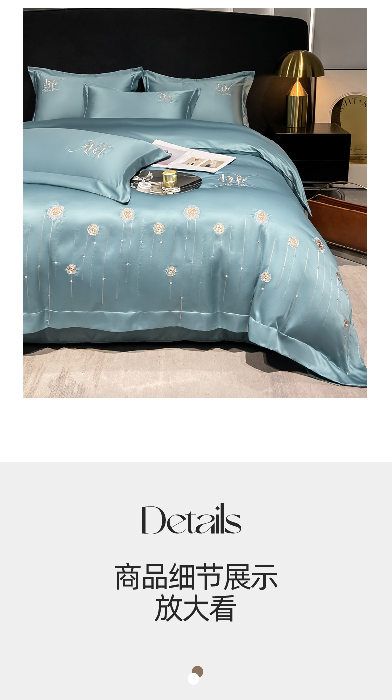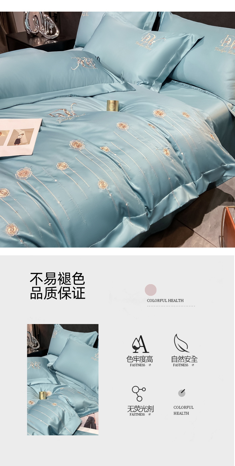商品名称:欧冠家纺 2024新款水洗真丝绣花爱媛四件套 爱媛-星月蓝