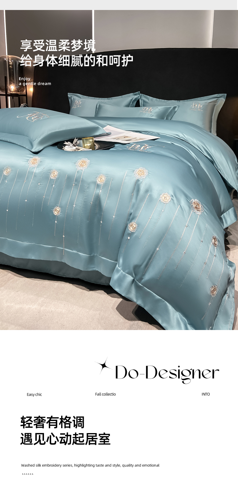 欧冠家纺 2024新款水洗真丝绣花爱媛四件套 爱媛-星月蓝