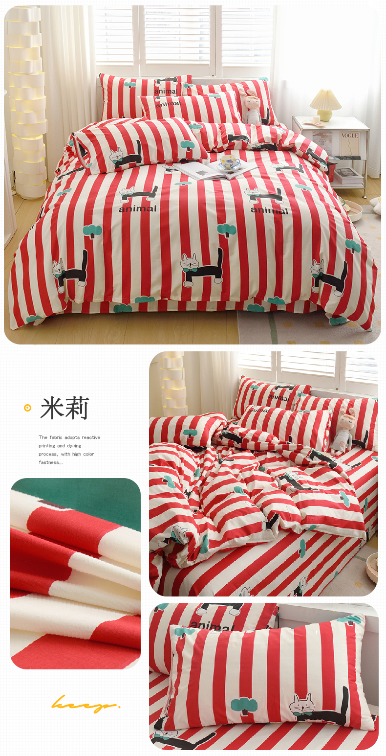 (总)启优家纺全棉四件套简约款纯棉床笠四件套,法豆,虹彩,林西-红,林西-绿,米莉,秘境-粉,秘境-灰,秘境-桔,秘境-绿,密境-黑,条纹米奇,星河一绿