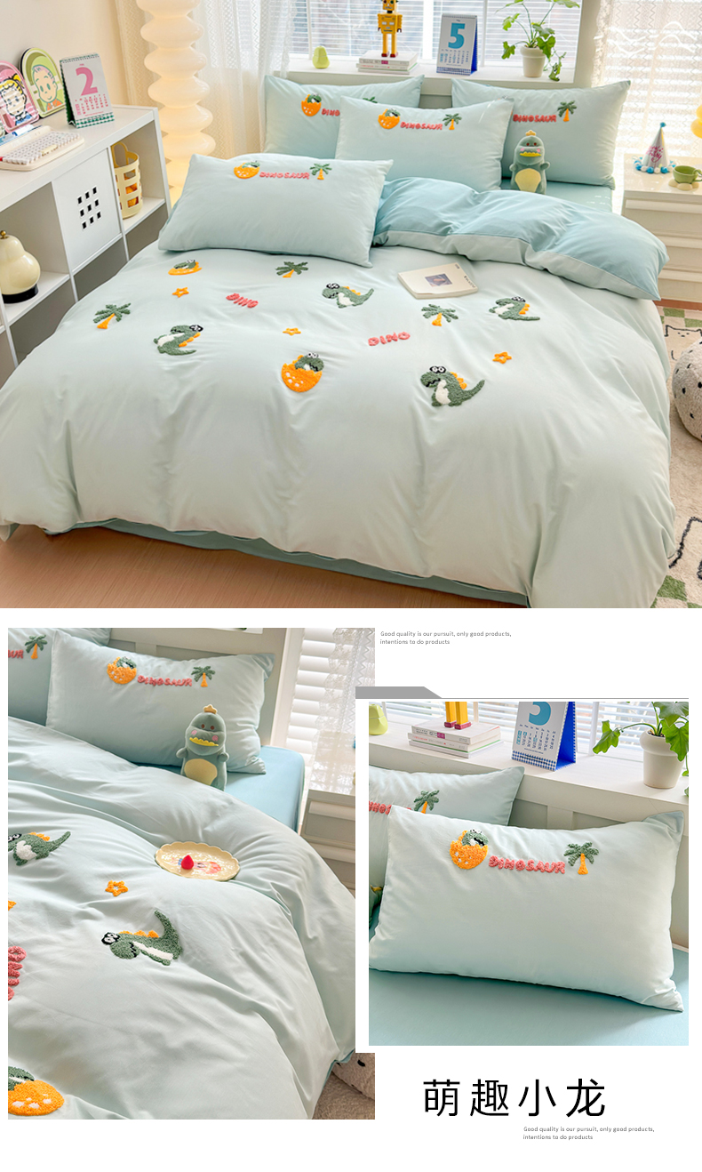 当前位置: 91家纺网 > 商品网购 > 床品套件 > 四件套 > 全棉普通四件套 > 锦觅 2024春夏新品韩式小清新全棉水洗棉毛巾绣重工刺绣纯棉四件套 萌趣小龙