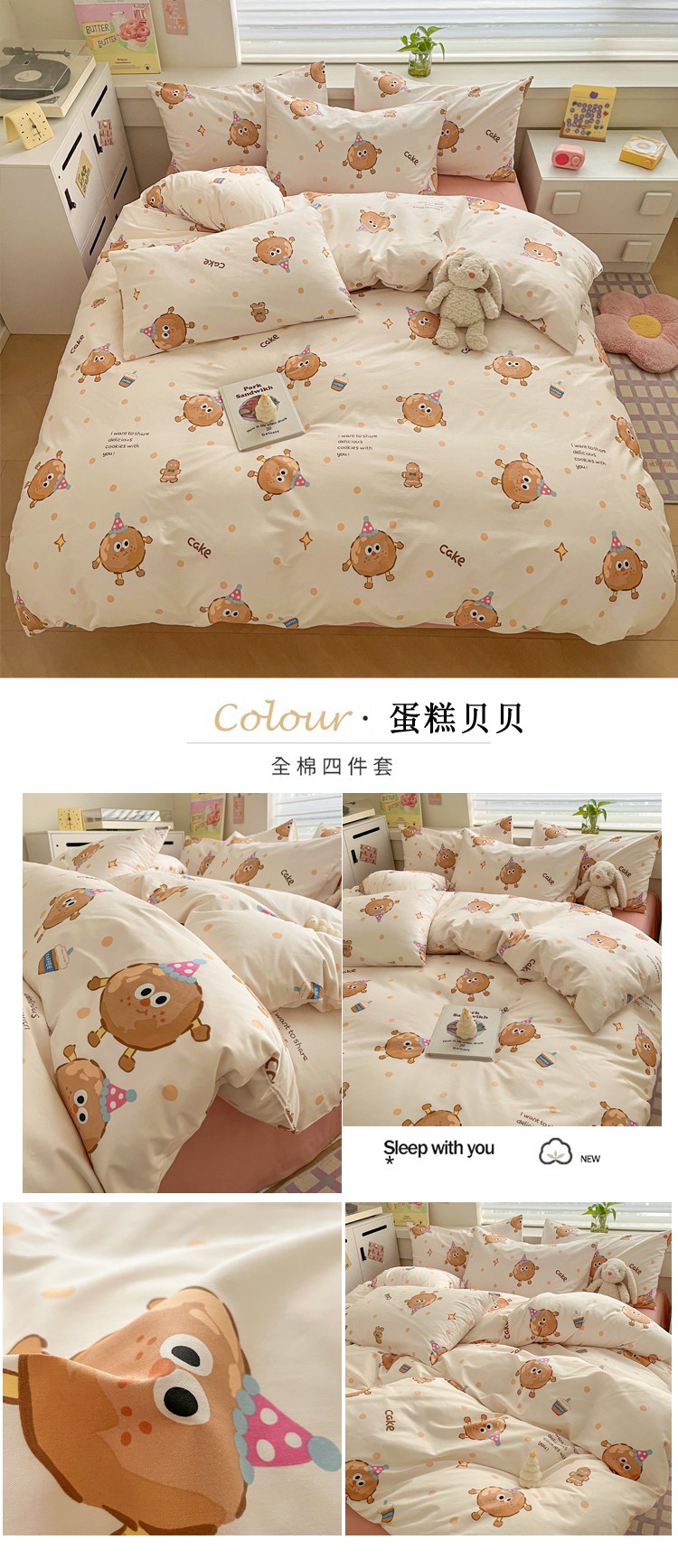 当前位置: 91家纺网 > 商品网购 > 床品套件 > 四件套 > 全棉普通四件套 > 柠馨 2024新款全棉13376乖萌系列四件套(第六批) 蛋糕贝贝