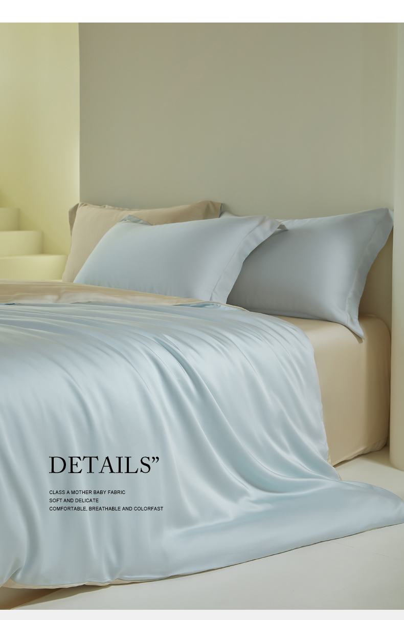 商品名称:(总)618家纺 2024新款A类60S100支兰精天丝四件套-简约系列 天丝双拼米蓝
