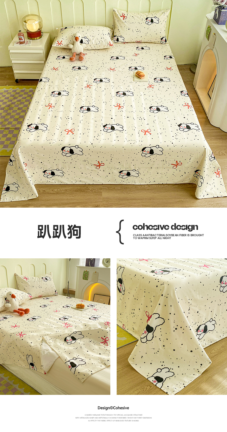 寐眠 2024新款全棉老粗布印花床单床盖 趴趴狗