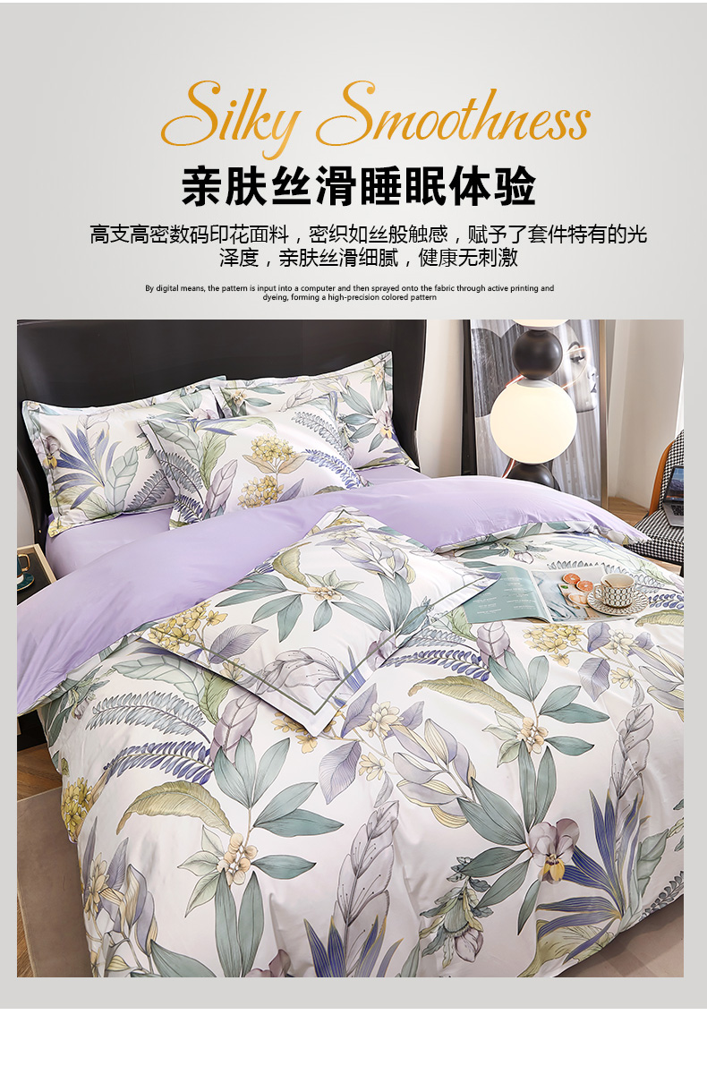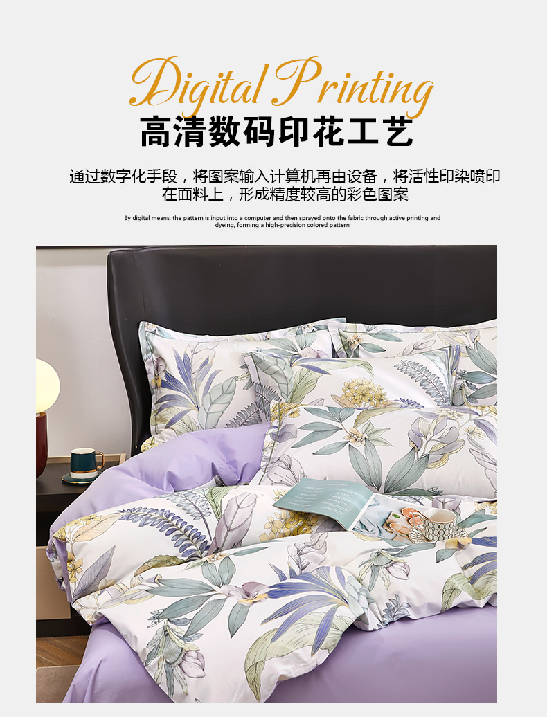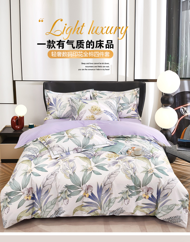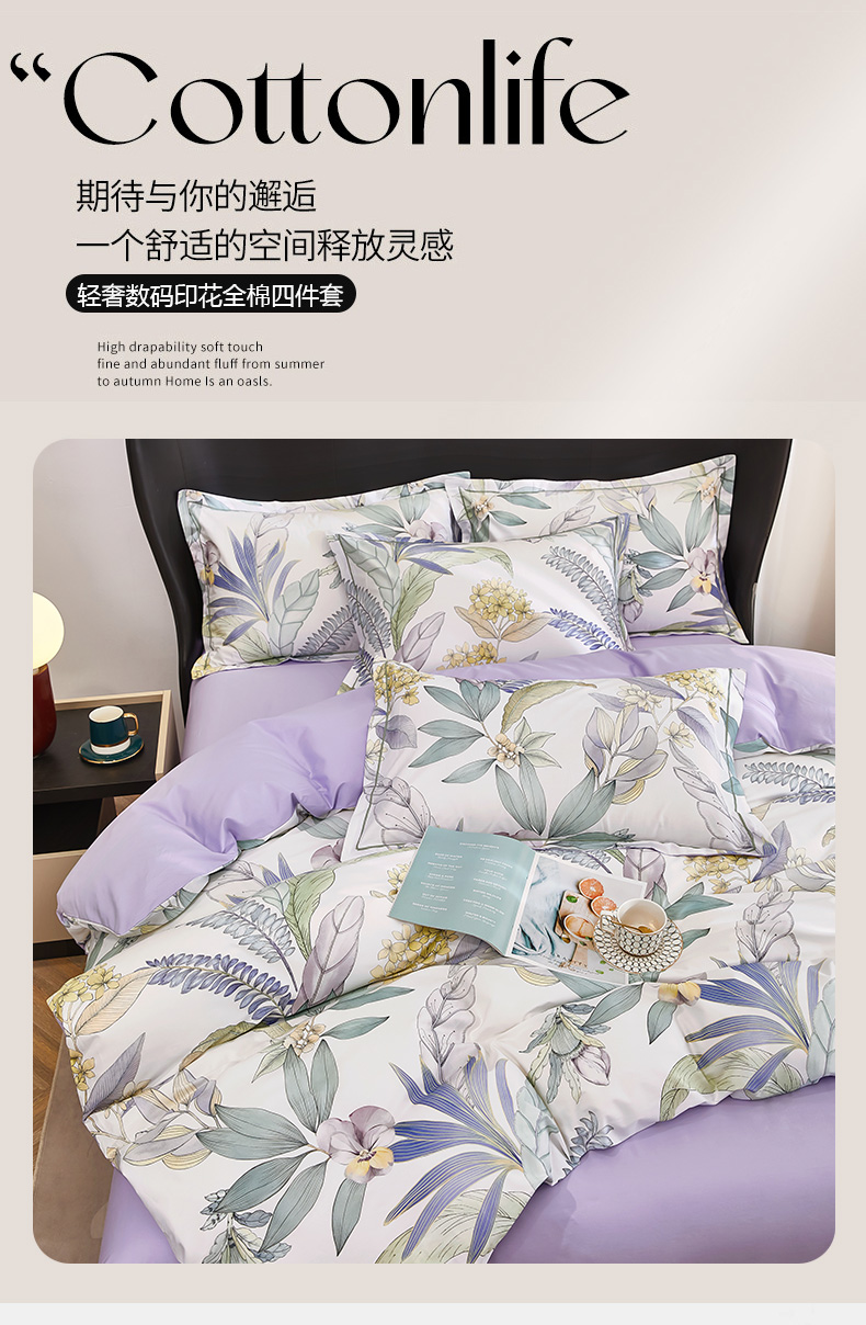 雲归梦 2024新款全棉铂金棉数码印花四件套 花意飘香 紫