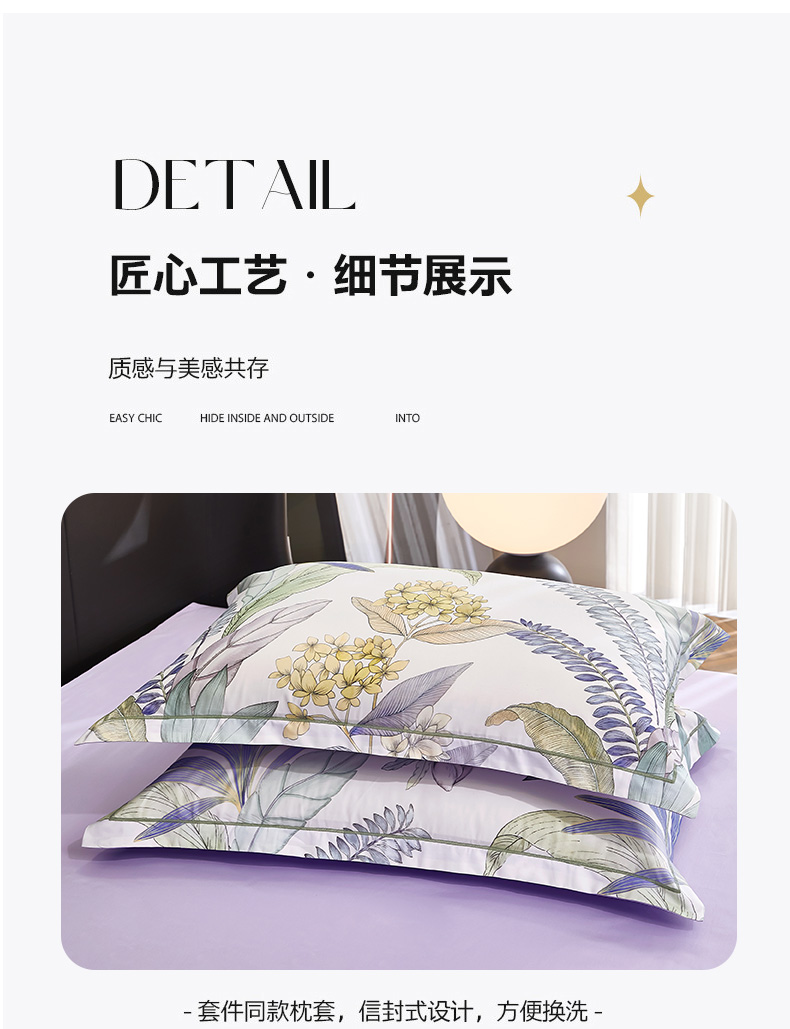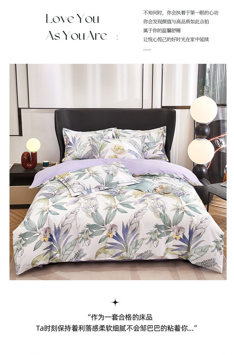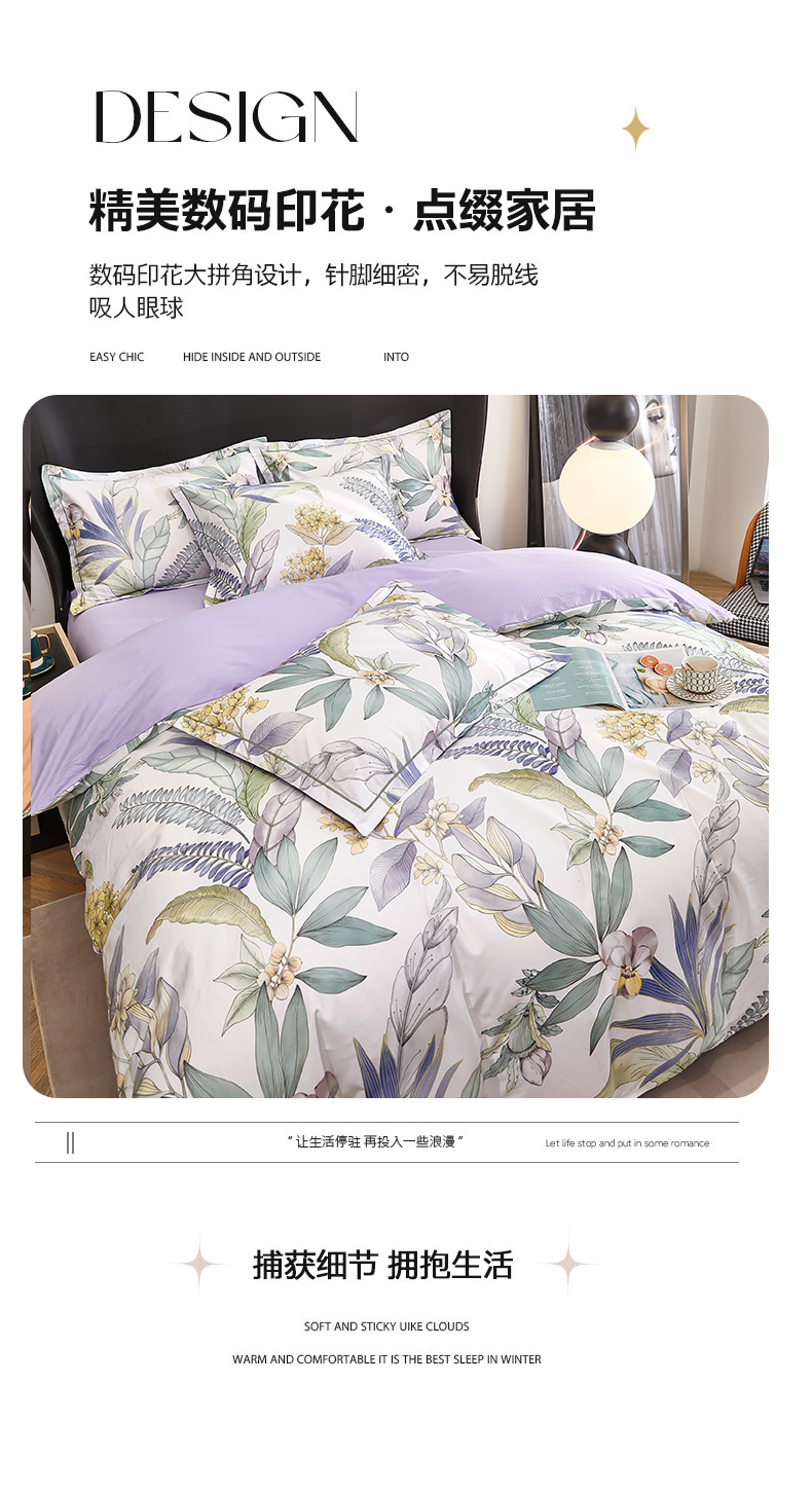 雲归梦 2024新款全棉铂金棉数码印花四件套 花意飘香 紫