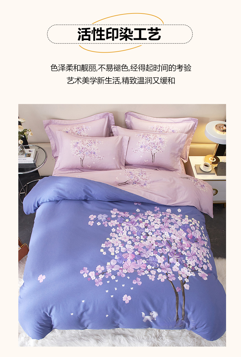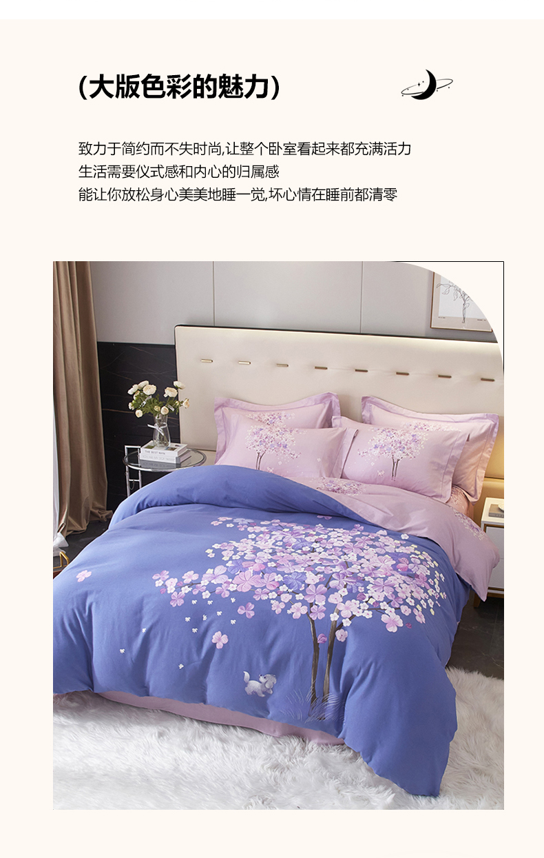 商品名称:启航家居 2025春夏直播爆款全棉大版印花四件套 许愿树蓝