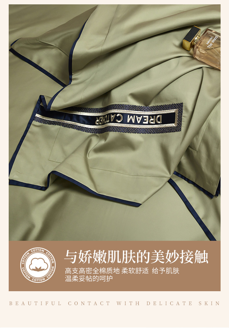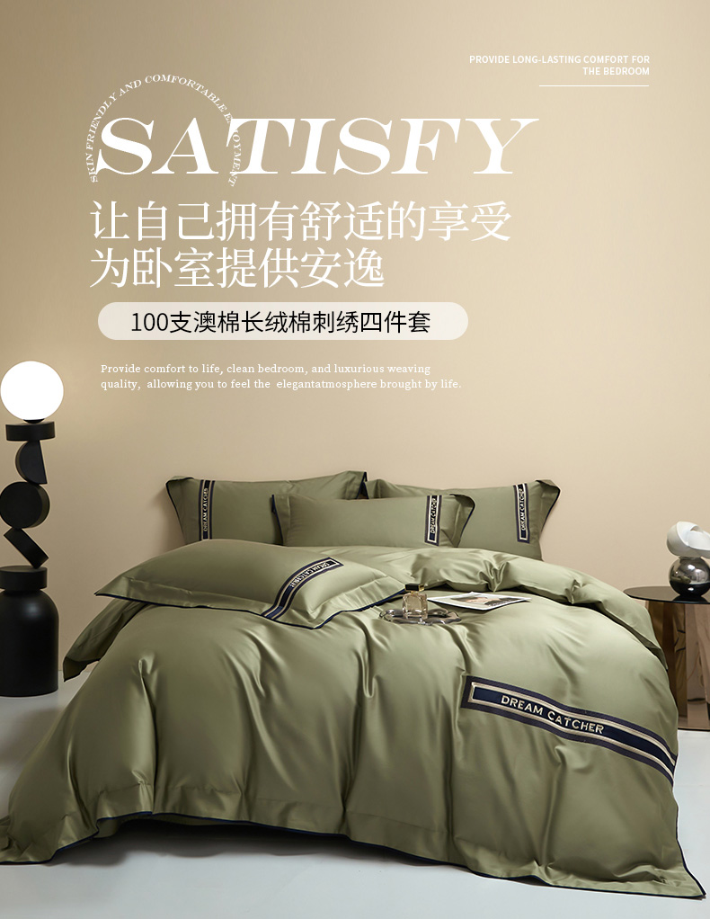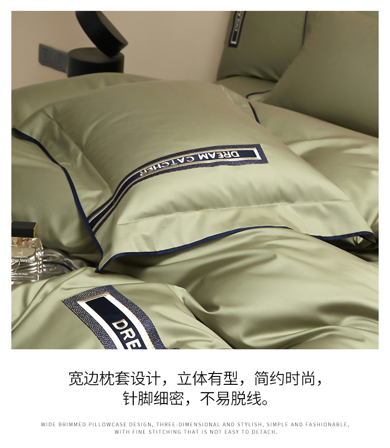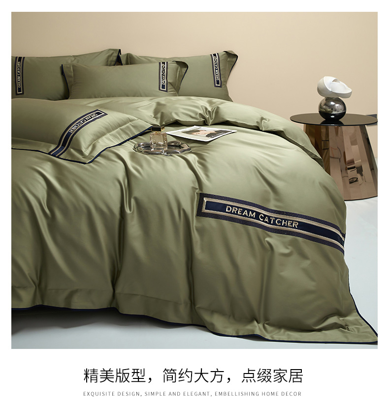 商品名称:爱缦 2024新款100支澳棉CR工艺极简轻奢刺绣四件套-茹伊 风格一 港风绿