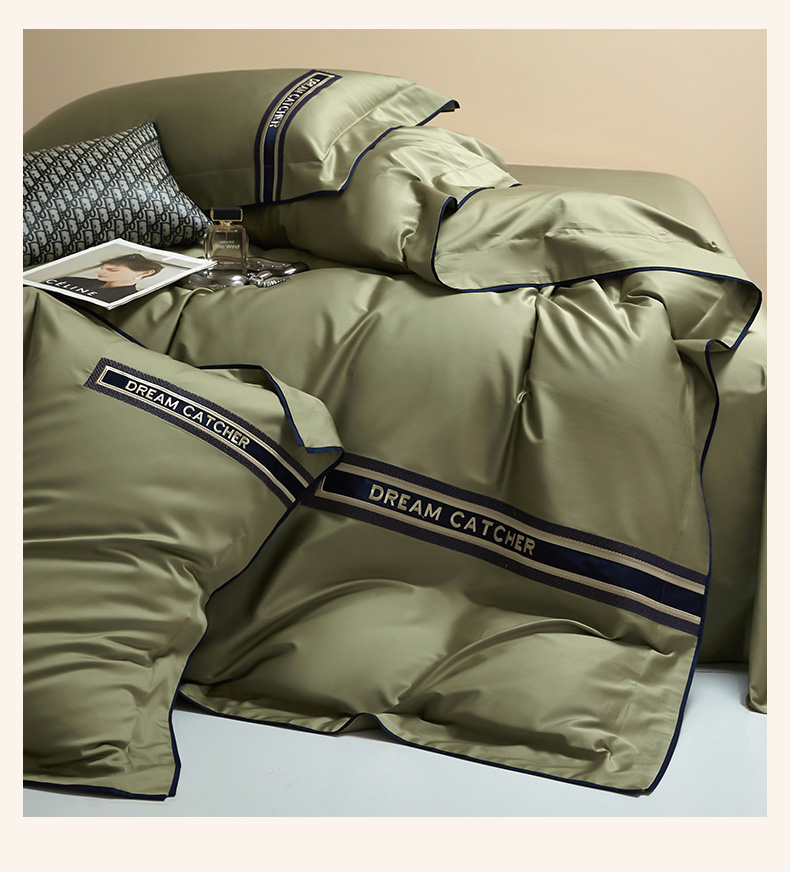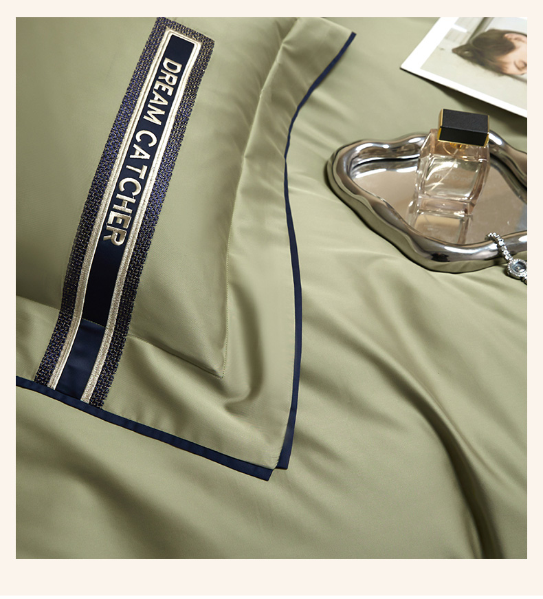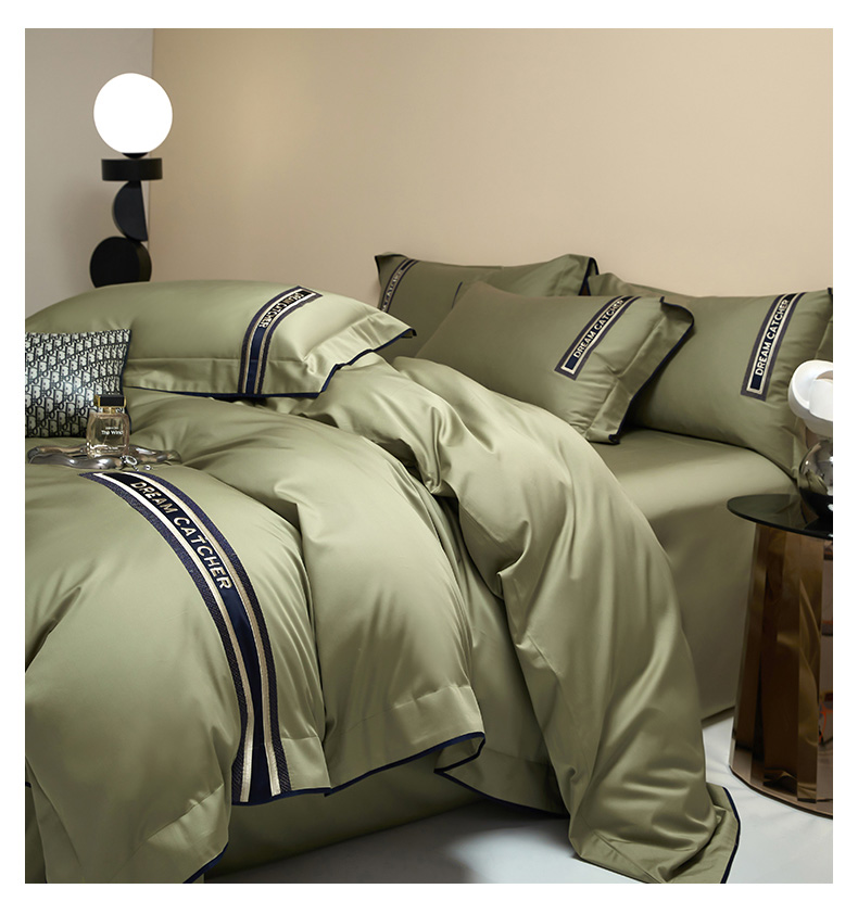 爱缦 2024新款100支澳棉CR工艺极简轻奢刺绣四件套-茹伊 风格一 港风绿