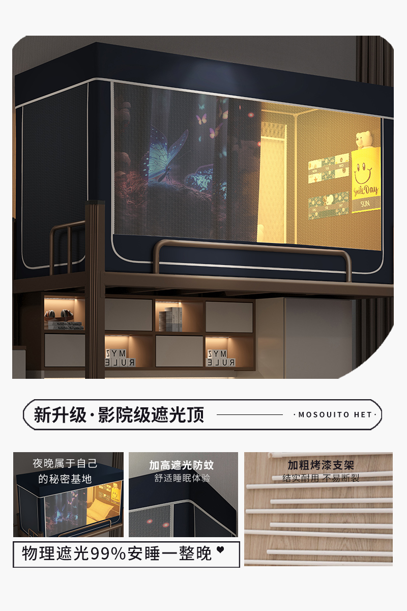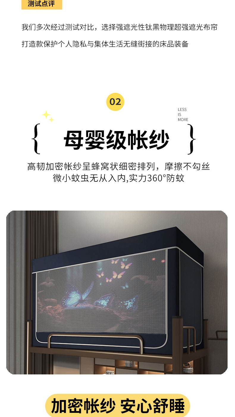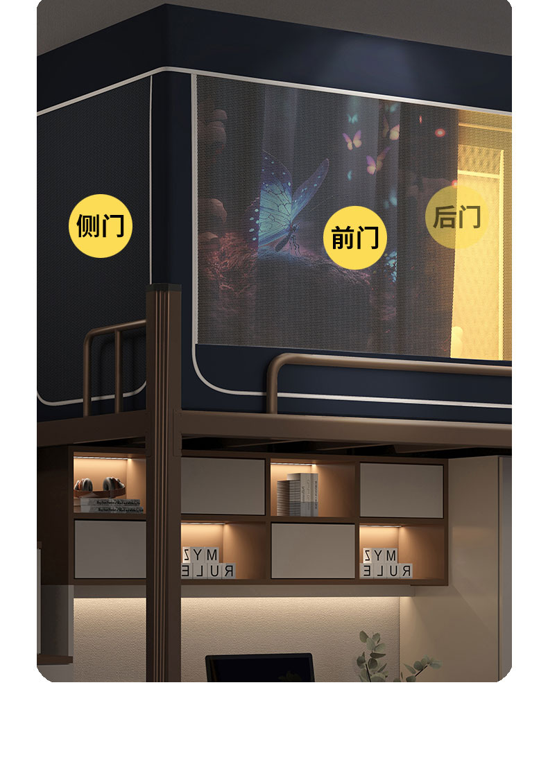 当前位置: 91家纺网 > 商品网购 > 床上用品 > 蚊帐 > 学生蚊帐 > 宅部落 2024新款99%全遮光涂层学生上下铺蚊帐 印花-小蓝蝶