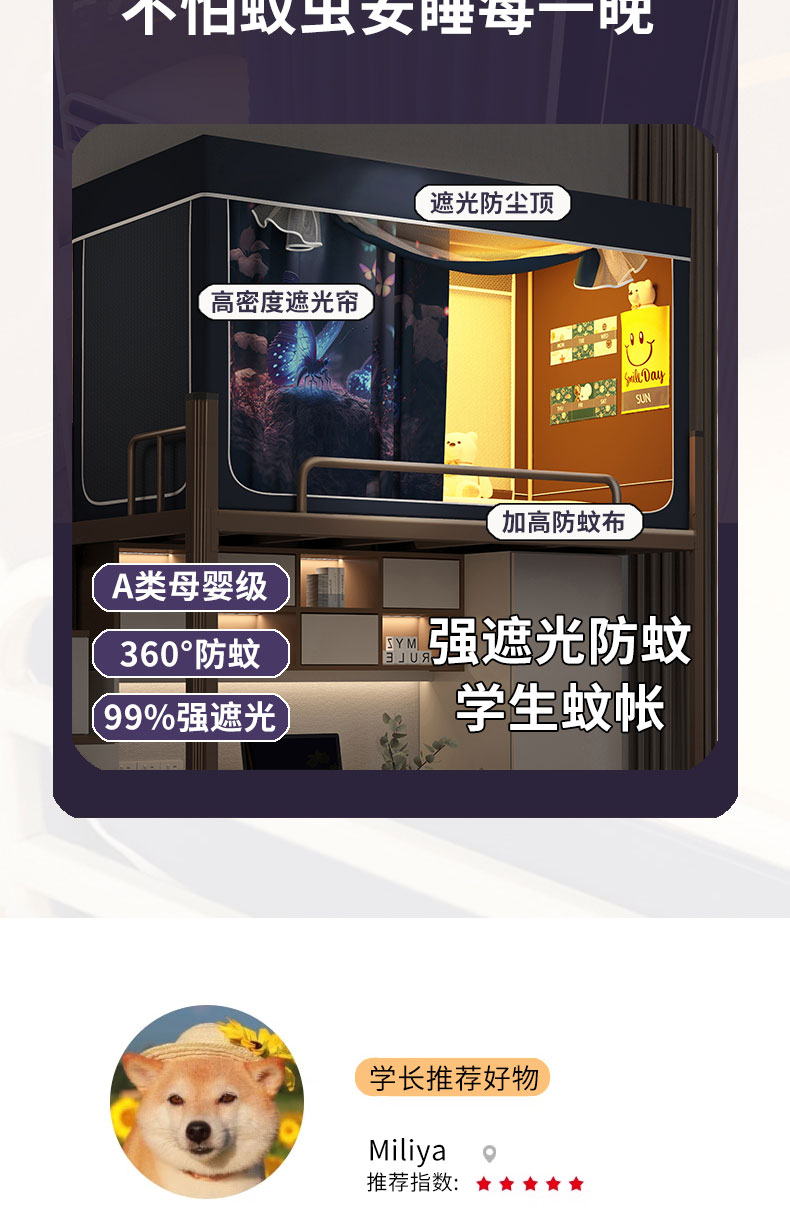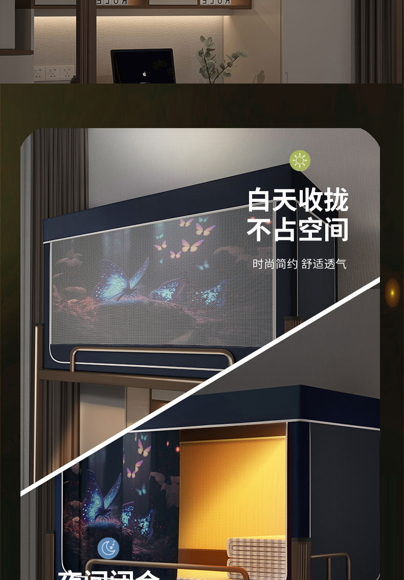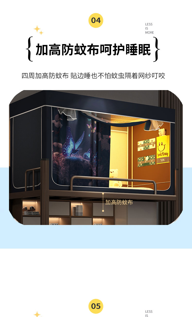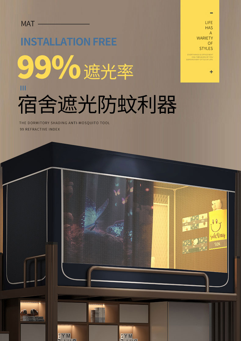 当前位置: 91家纺网 > 商品网购 > 床上用品 > 蚊帐 > 学生蚊帐 > 宅部落 2024新款99%全遮光涂层学生上下铺蚊帐 印花-小蓝蝶