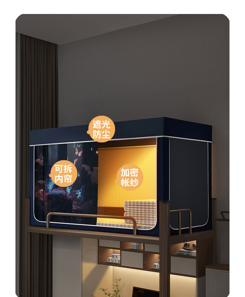 90上铺(带靠墙帘):90宽*190长*110高(自连接烤漆支架) | ¥103.00 |