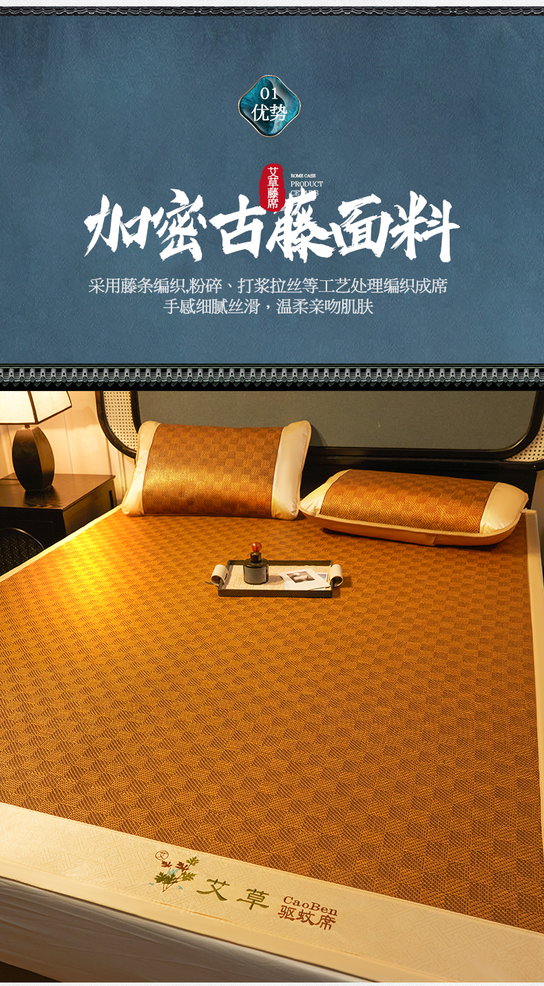 商品名称:大元 2026新款凉席刺绣艾草藤席 刺绣款-经典格
