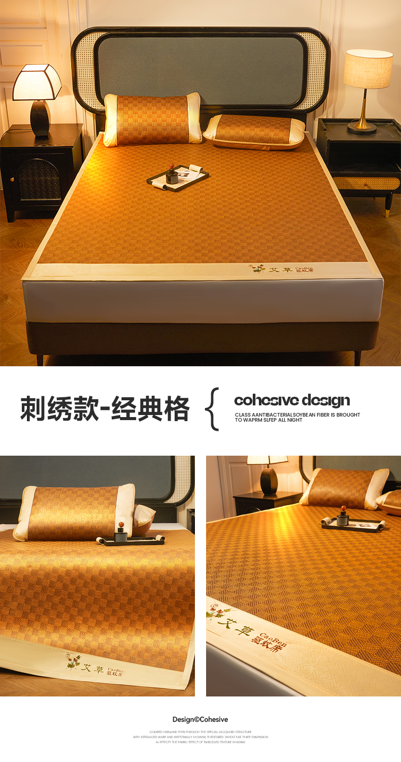 大元 2026新款凉席刺绣艾草藤席 刺绣款-经典格