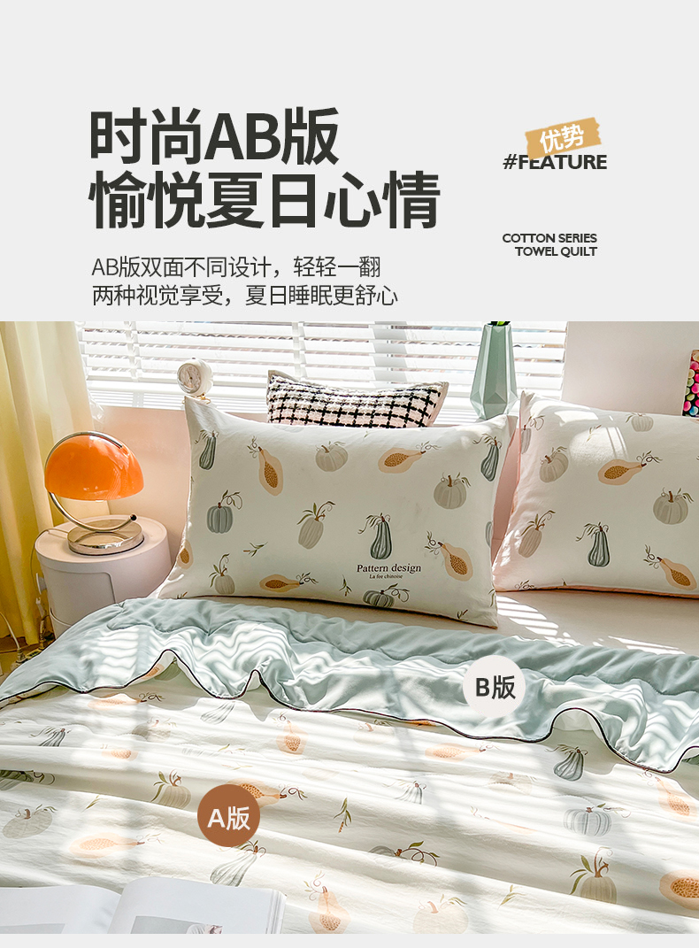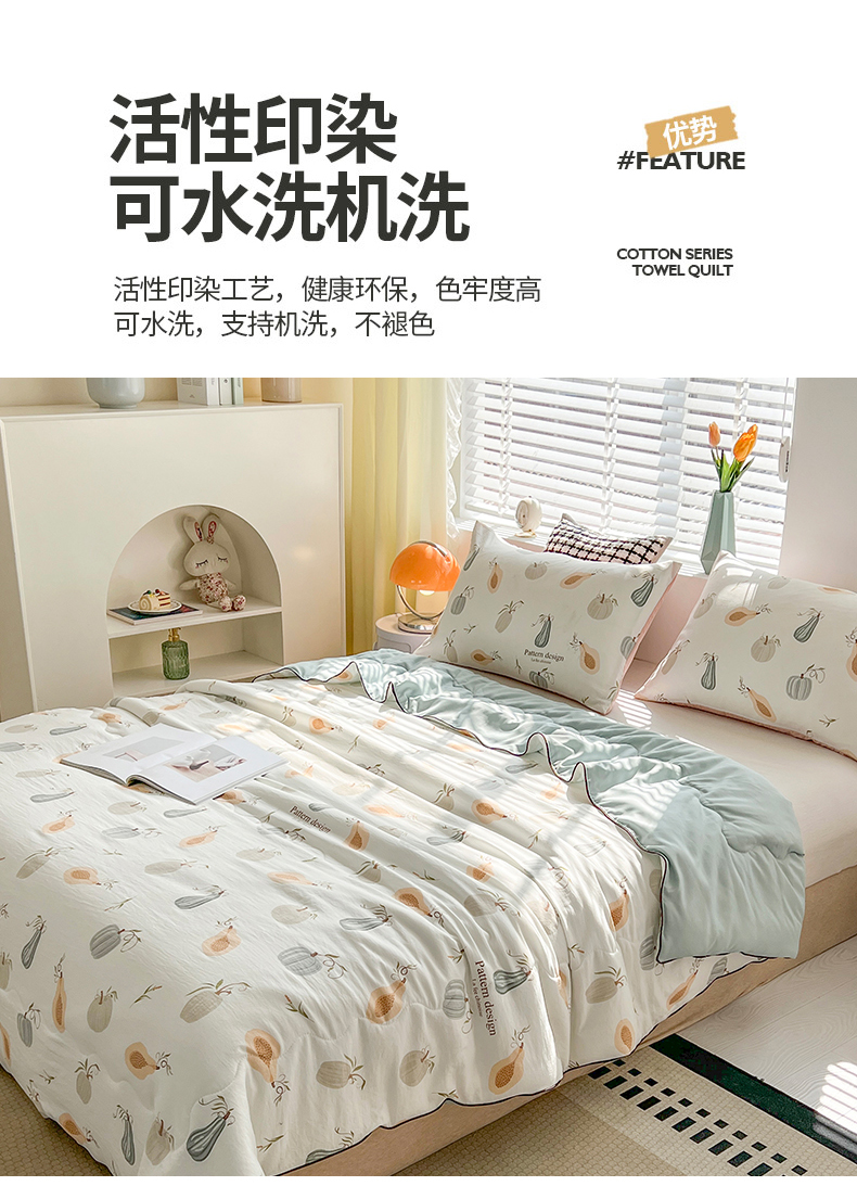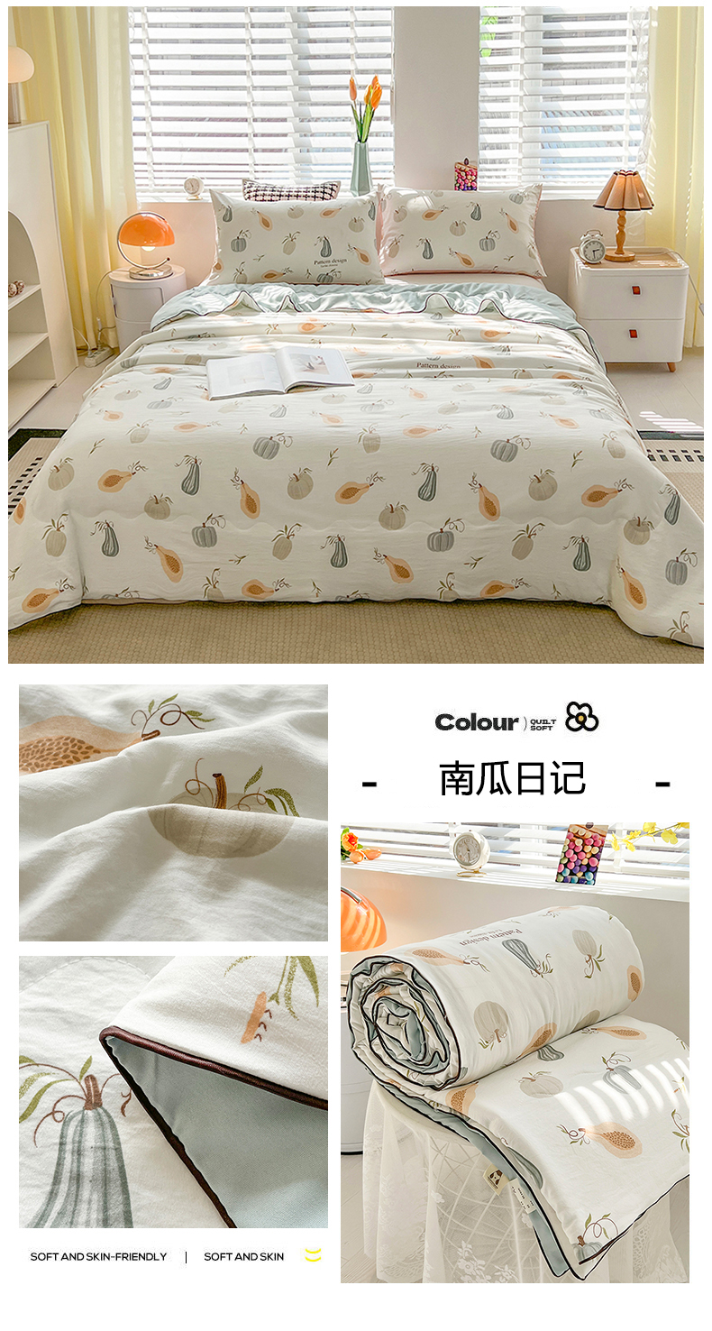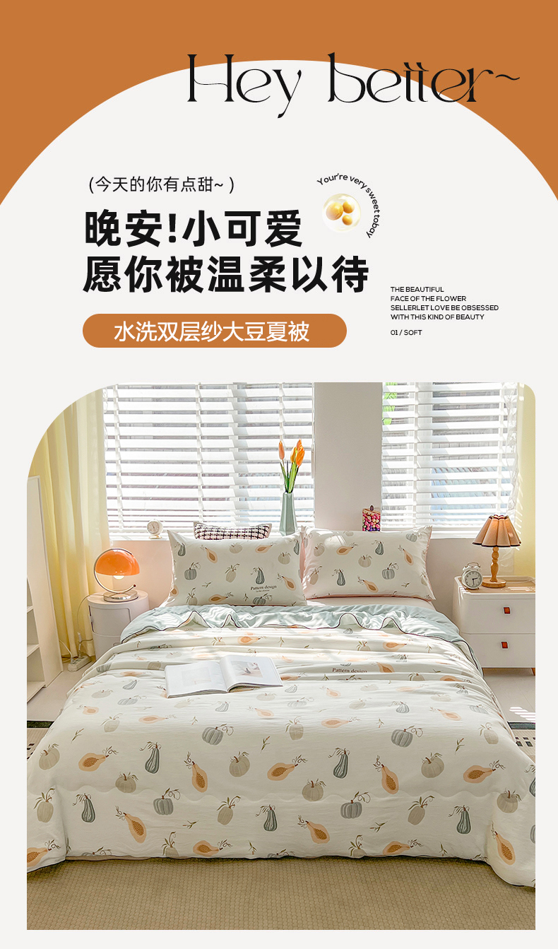 商品名称:艺菲阁家纺 2024新款大豆蛋白水洗双层纱夏被 南瓜日记
