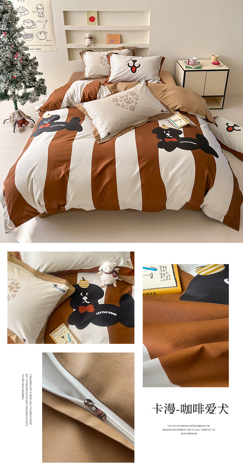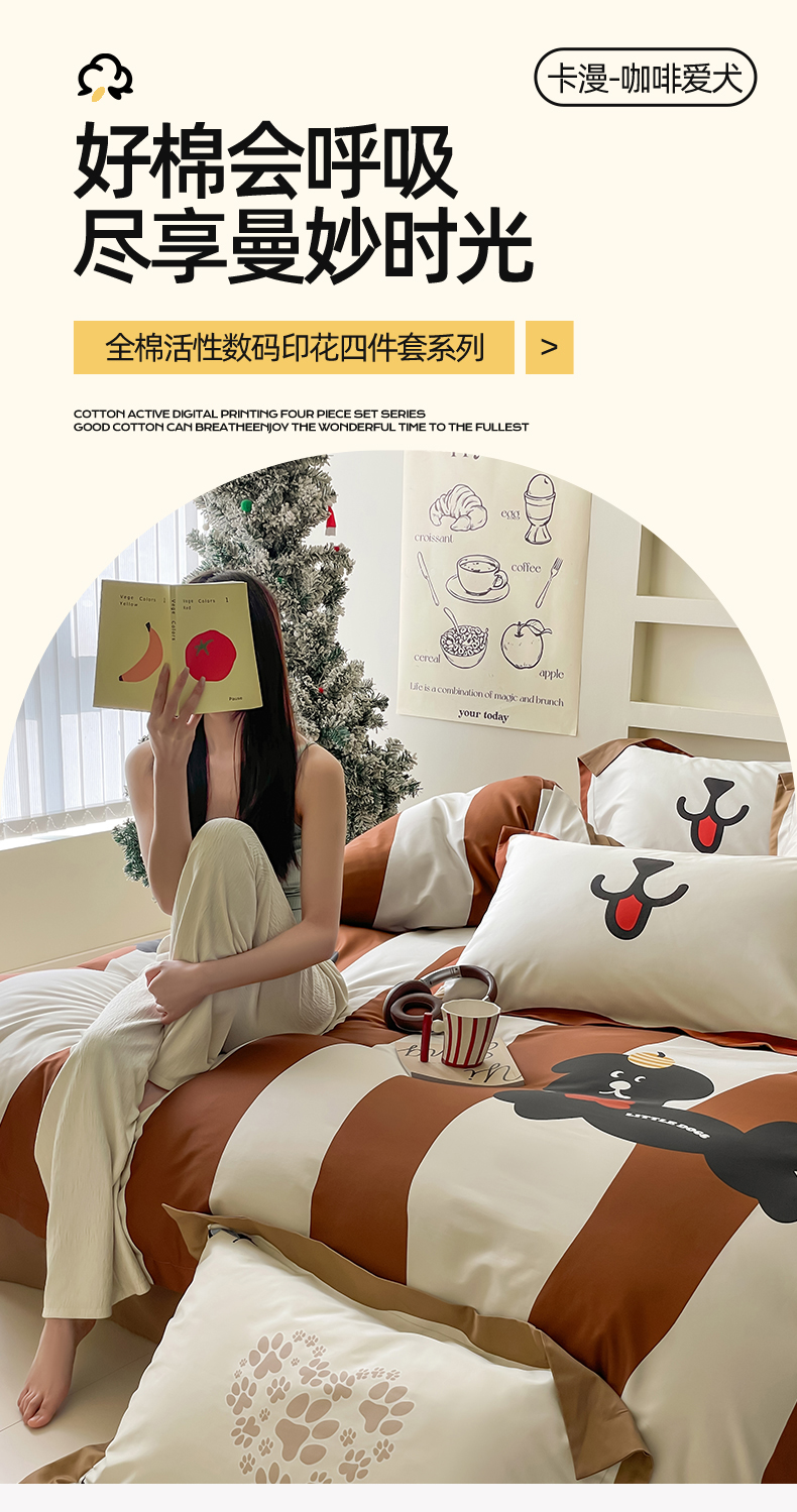 商品名称:蓝米卡夫 2024新品A类全棉活性数码-卡漫系列 卡漫-咖啡爱犬